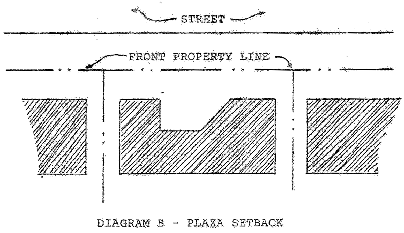A plaza as illustrated in Diagram B below in the case where adjoining buildings have little or no front yard setback.