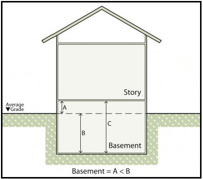 Basement. That portion of a building which is partly or wholly below grade but so located that the vertical distance from the average grade to the floor is greater than the vertical distance from the average grade to the ceiling. A basement shall not be counted as a story.