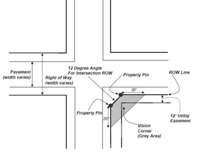 Vision corner. An established line of sight that does not obstruct or impair the line of sight for motorized or non-motorized vehicles traveling in an established right-of-way.