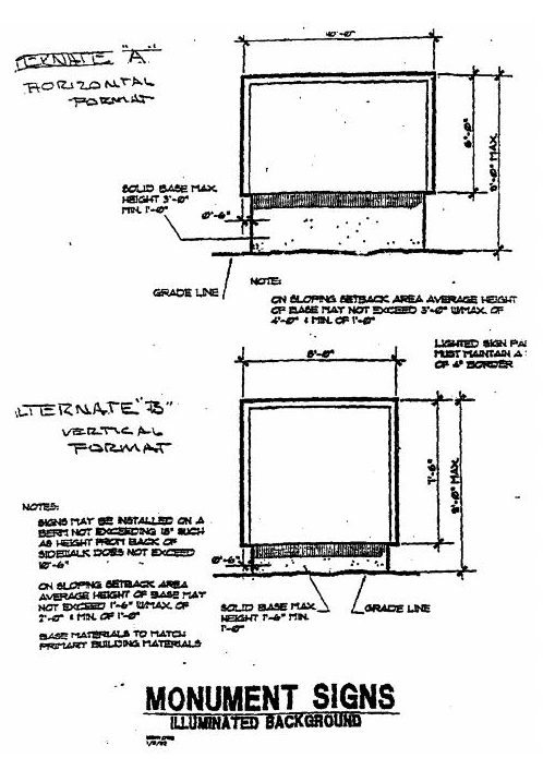 "Freestanding Monument" | An accessory sign, not attached to or part of a building, and having a height of nine feet (9') or less. |