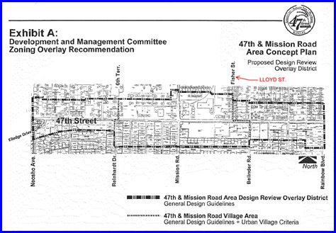 Depiction of 47thand Mission Road Area Design Review Overlay District and 47thand Mission Road Area Concept Plan. The 47 th and Mission Road Area Design Review Overlay District is hereby amended such that the overlay district shall consist of that area identified below as the "Suggested District Boundary." The Village Area, as used in this overlay district Ordinance, shall mean that area identified below as the "Suggested Village Boundary."