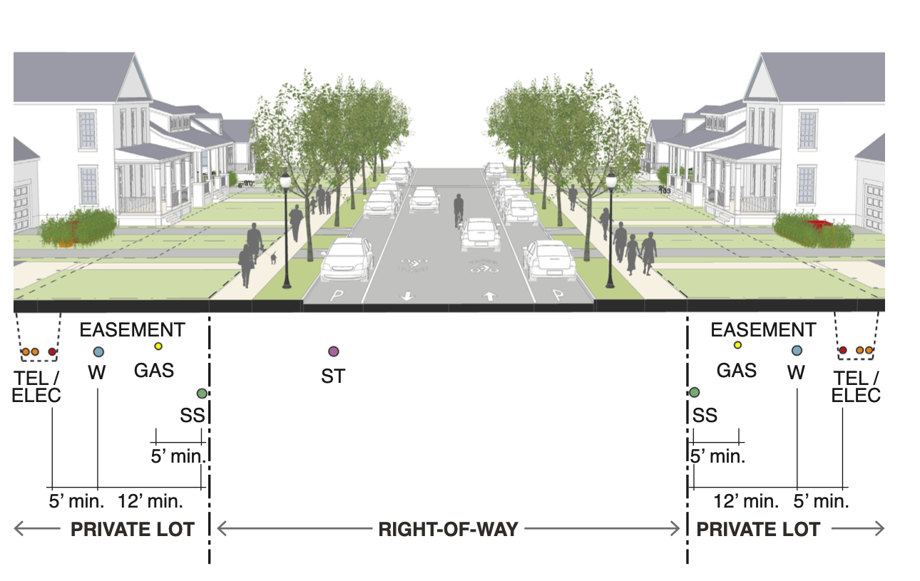 To standardize utility locations to avoid future utility conflicts and restrictions that may impact the occupation of front yards or the ability to redevelop properties.