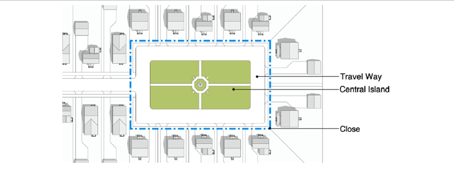 T5, T6, HC, I | 6 ft. min. each way | Landscape Strip, Raised Island, | 8 ft. min. | |||