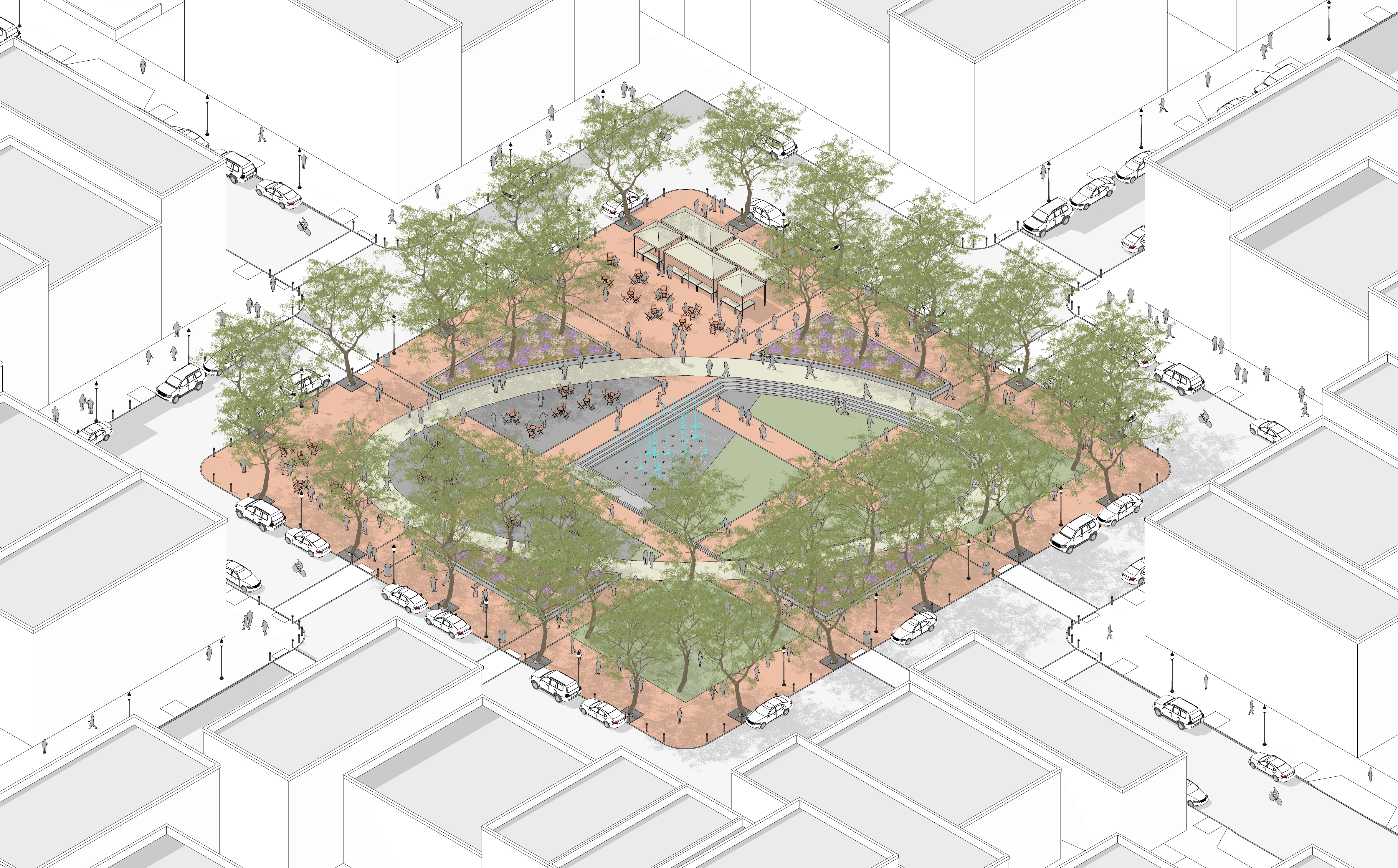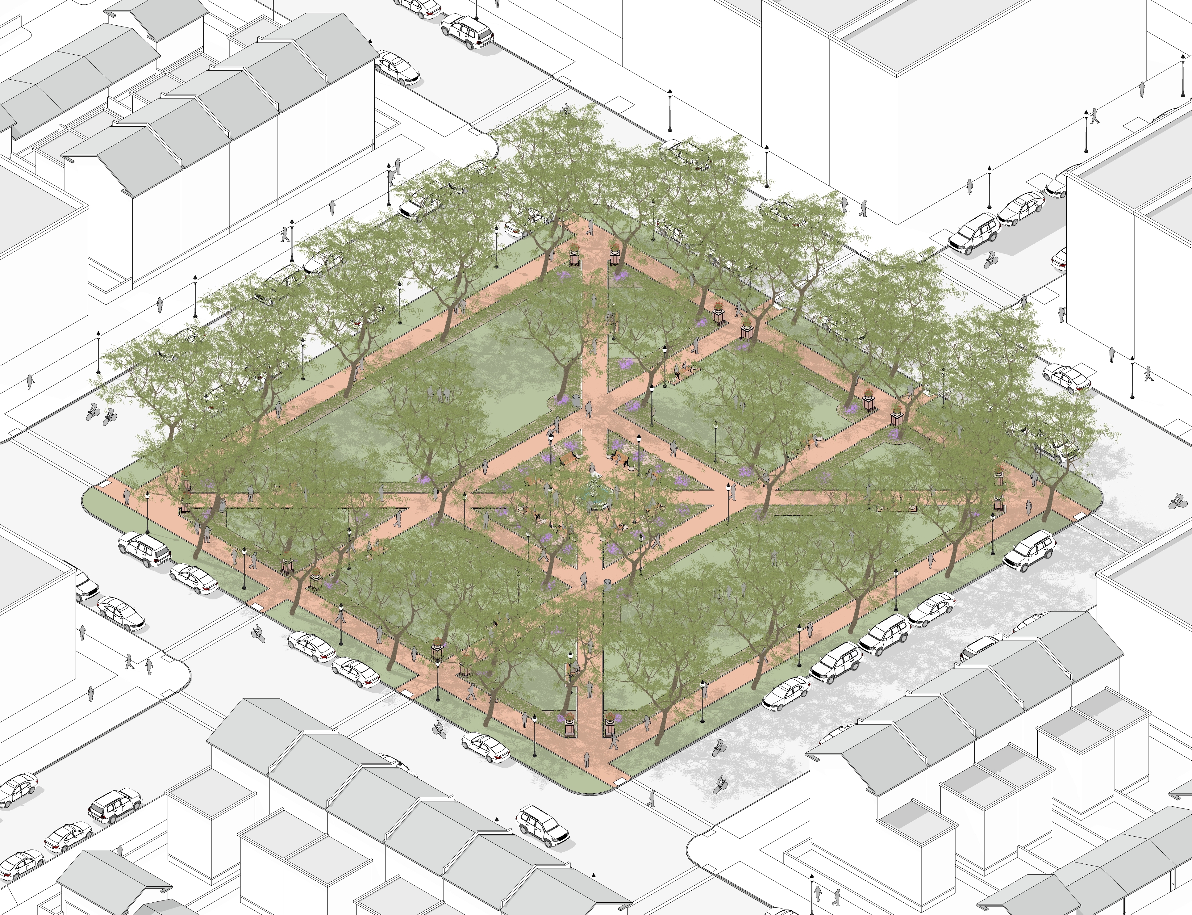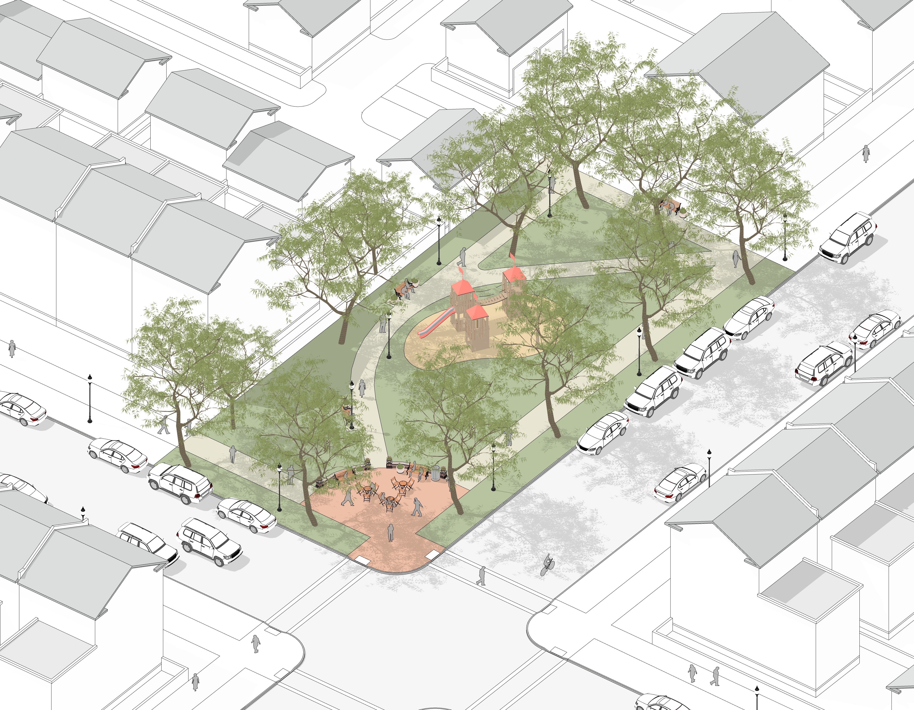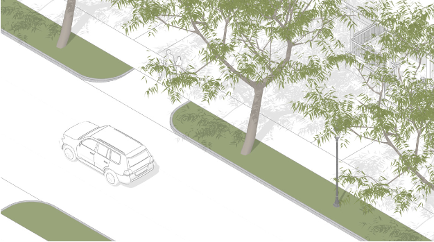 Surface: Tree Planter | Landscaped or ground cover with tree guards, rain gardens and LID, or unit pavers | |