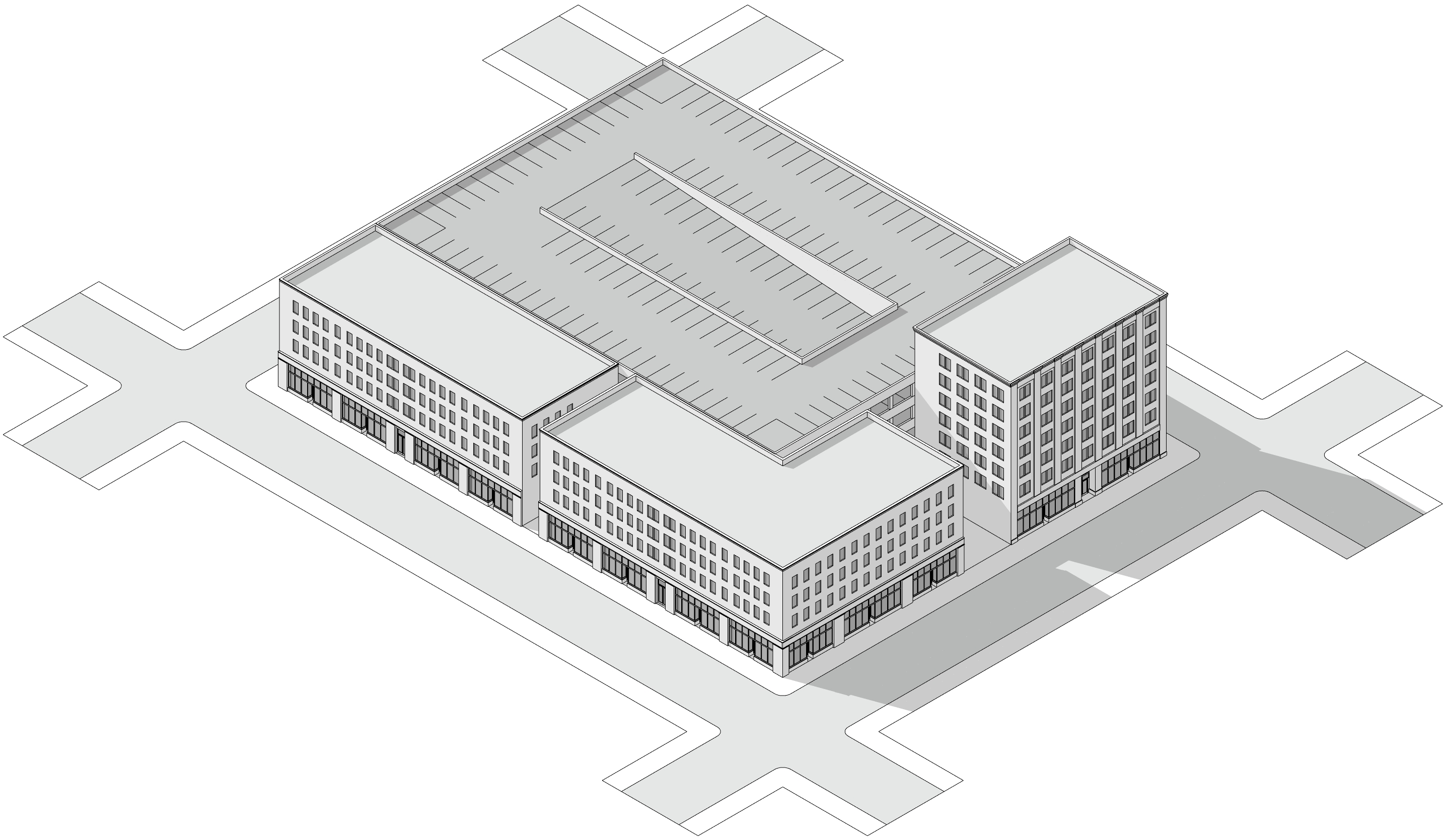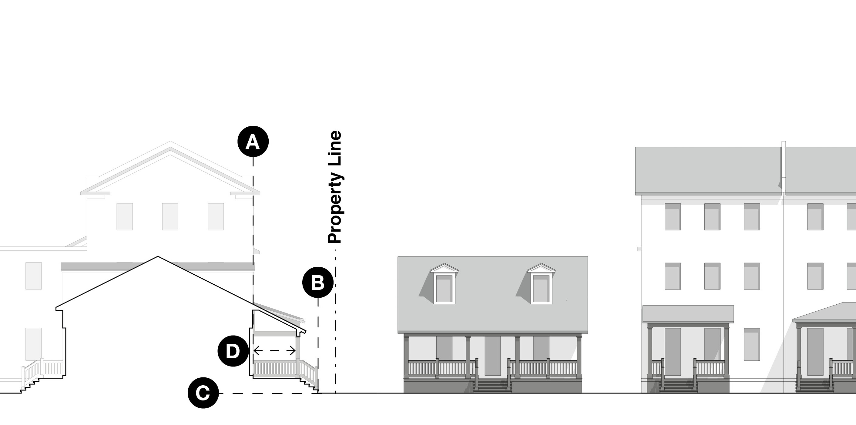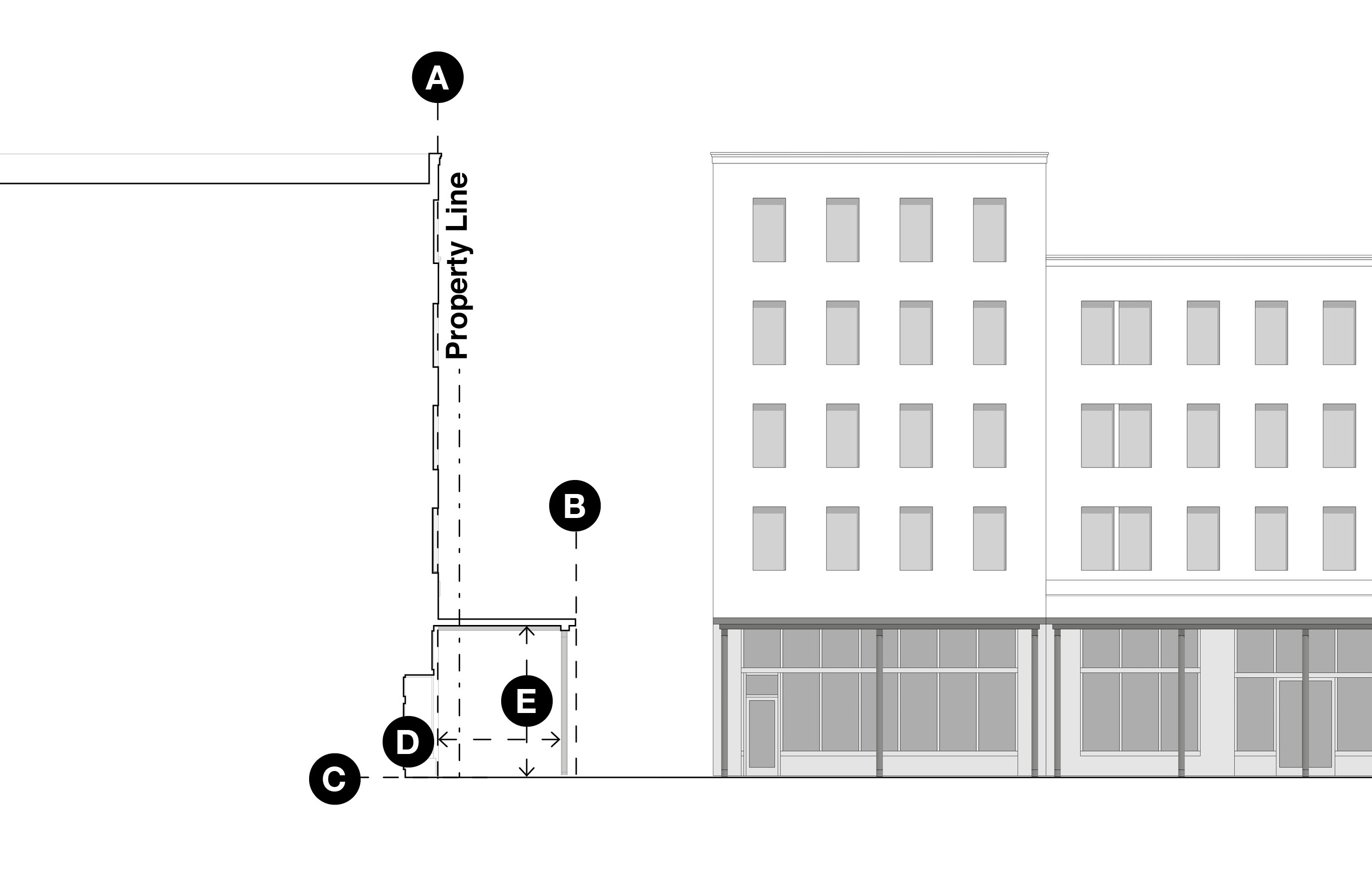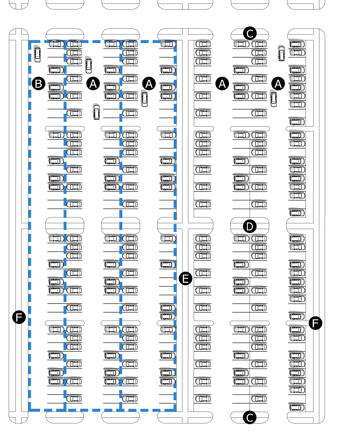 C | Planter and walkway at the end of aisles | F | Planter and walkway along lot lines |