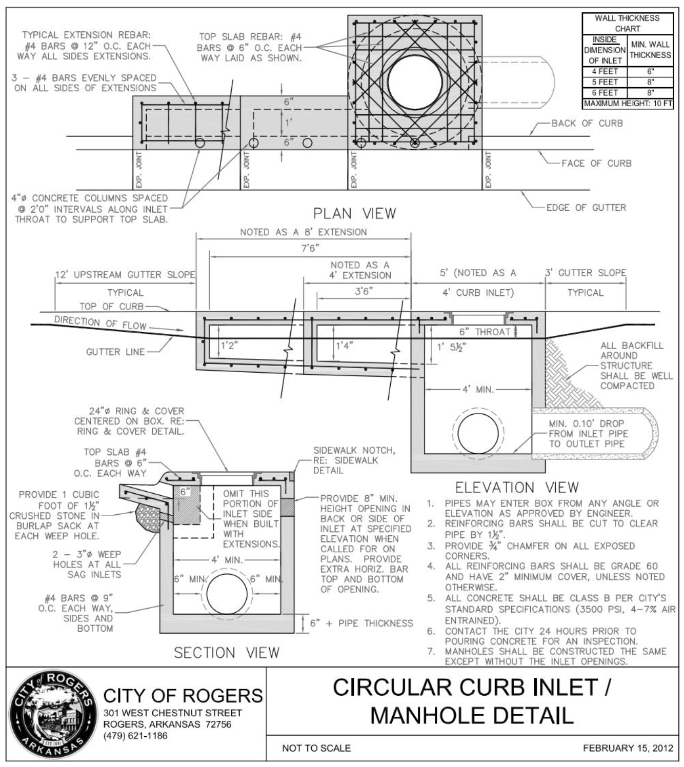 This Manual and the criteria, standards, and specifications contained herein shall be required for all development, redevelopment, and municipal projects within the jurisdiction of the City of Rogers, including construction by City crews. All redevelopment and improvements to existing streets, whether by public or private entities, require all streets and improvements in public rights-of-way and easements be brought into compliance with current codes unless waived in writing by the Community Development Director. The City’s review and approval of any plans, reports, or drawings or the City’s inspection and approval of any improvements constructed by the developer in accordance with this Manual, does not constitute a representation, warranty, or guarantee by the City that such improvements are free from defects or will operate adequately for the purpose intended.
