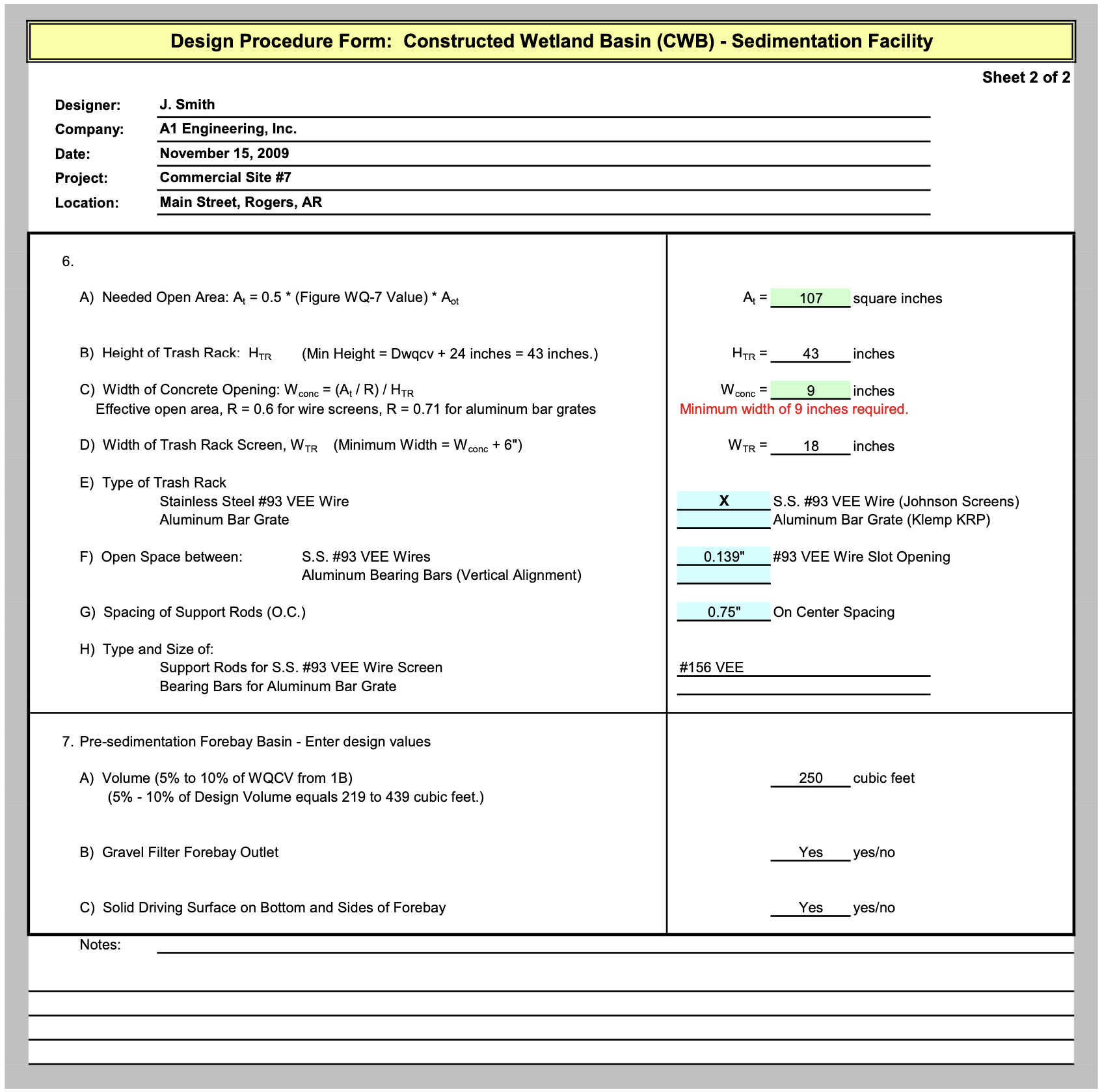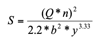 Determine: Swale geometry and longitudinal slope for a given 2-year peak flow rate and design velocity.