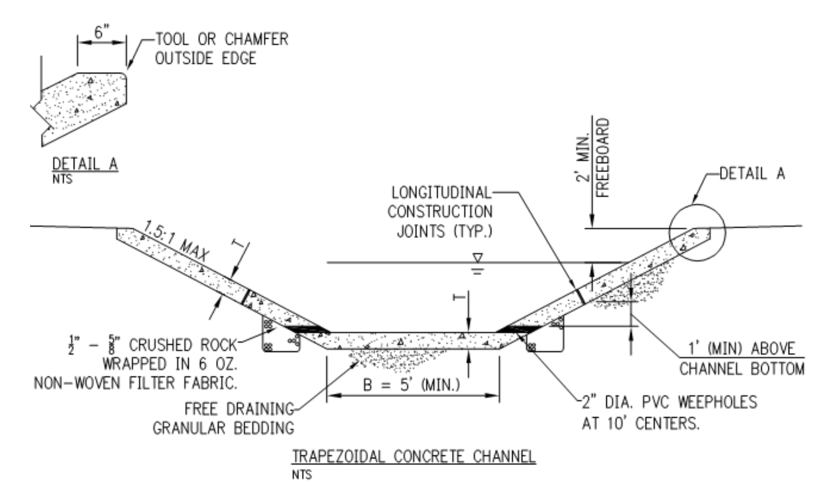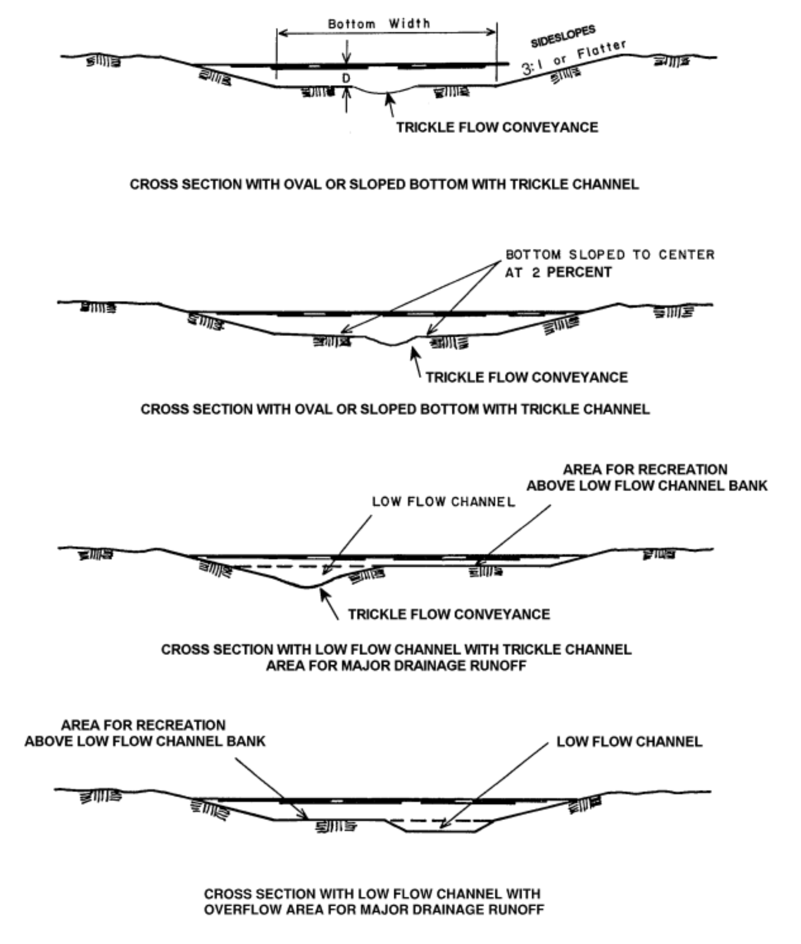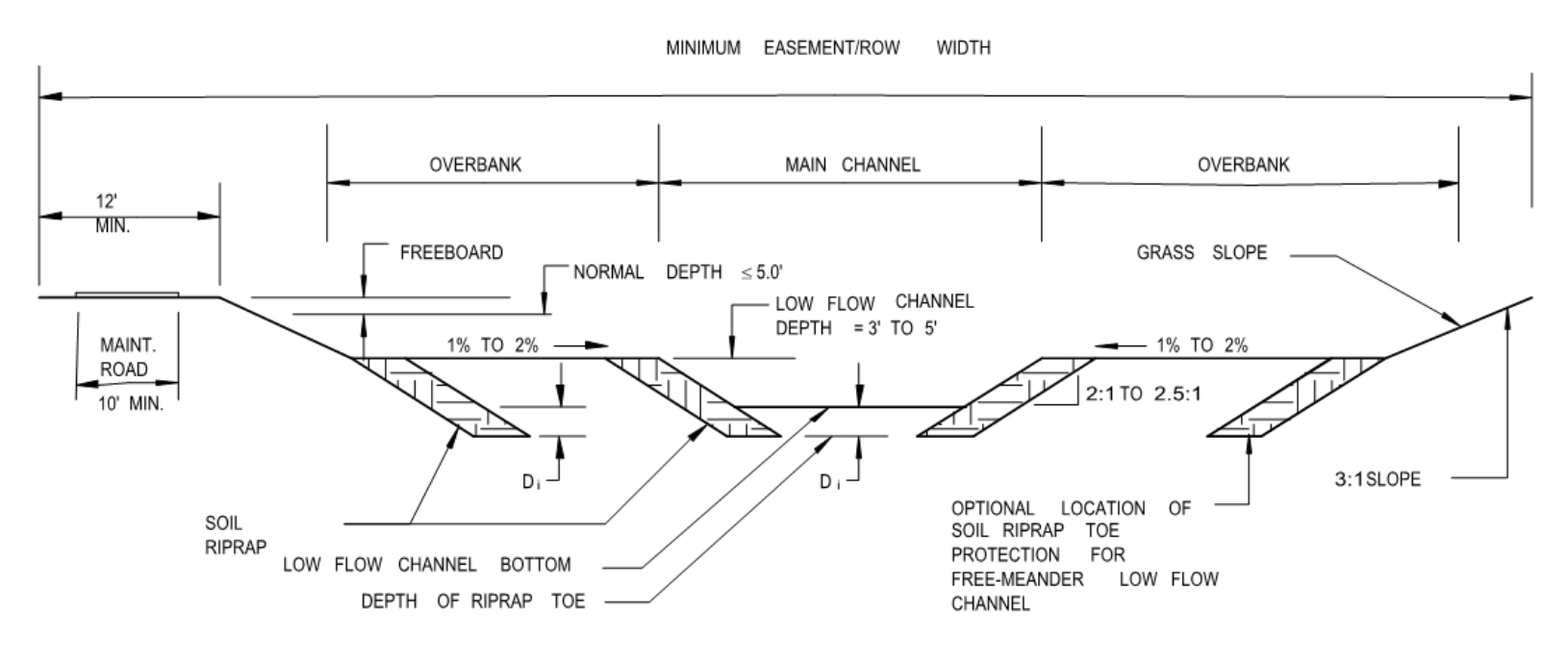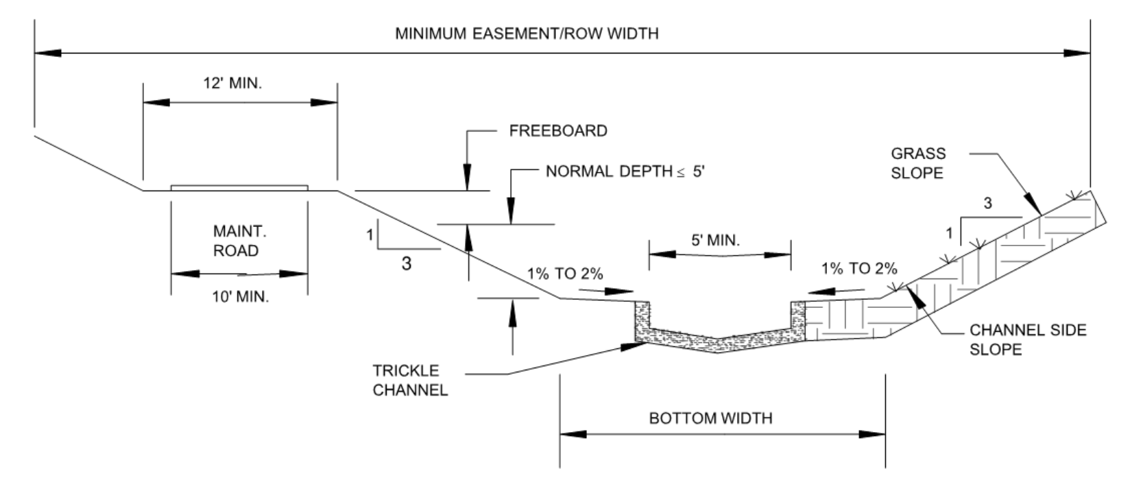 The purpose of this section is to provide design criteria for open channels, including grass-lined channels, composite channels, concrete-lined channels, riprap-lined channels, bioengineered channels, and natural channels. Open-channel hydraulic principles summarized in Section 2.0 can be applied using these design criteria to determine channel geometry and hydraulics.
