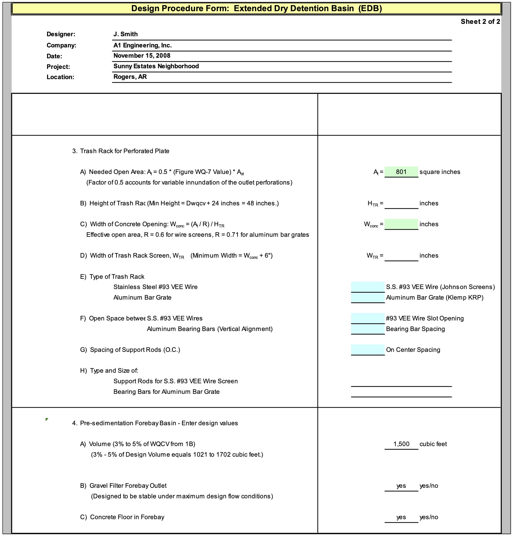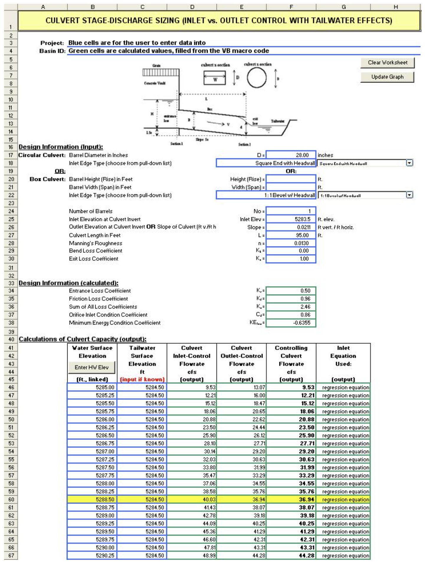 The GS Worksheet requires input for the grass swale characteristics and design constraints as described below: