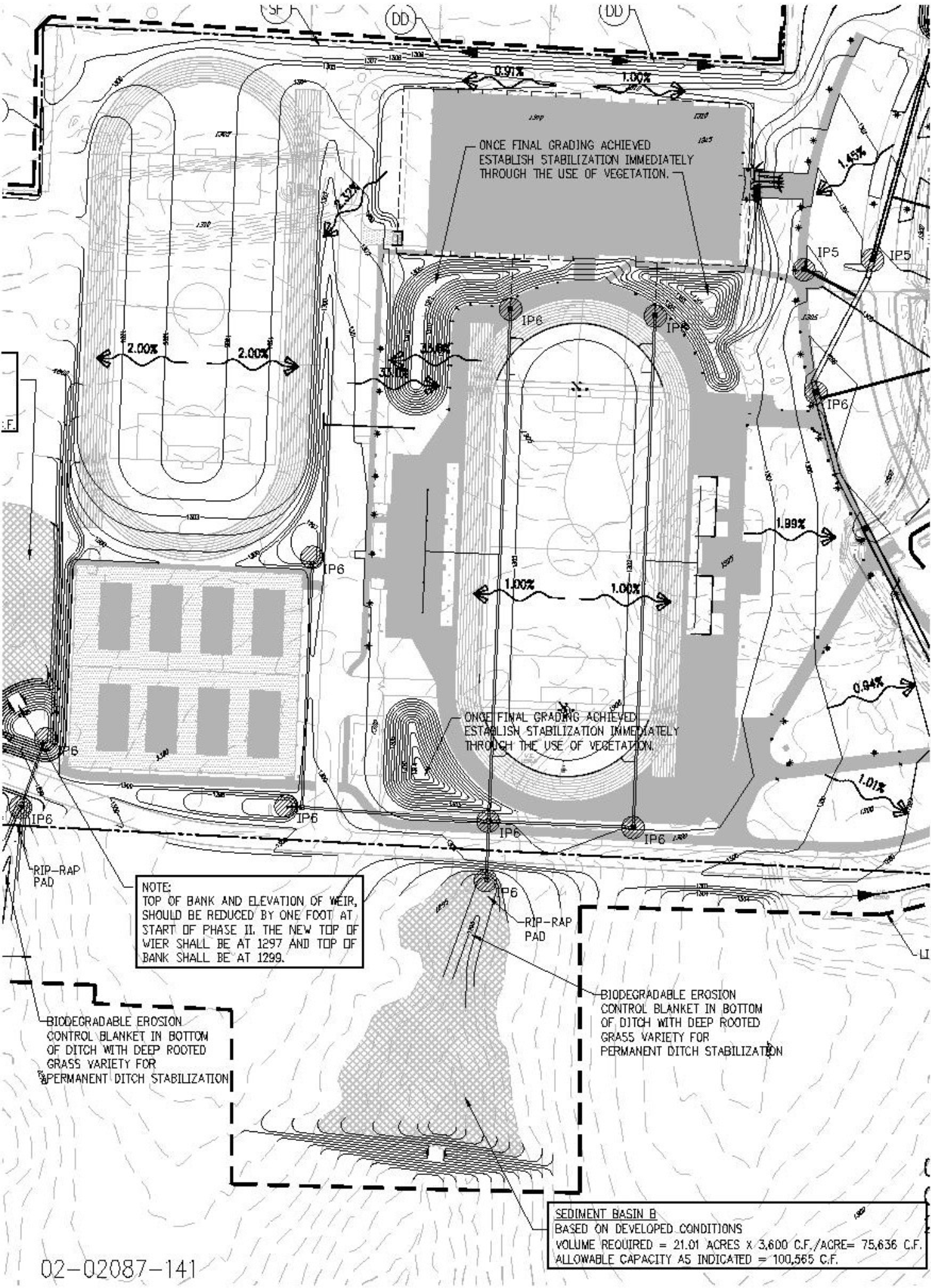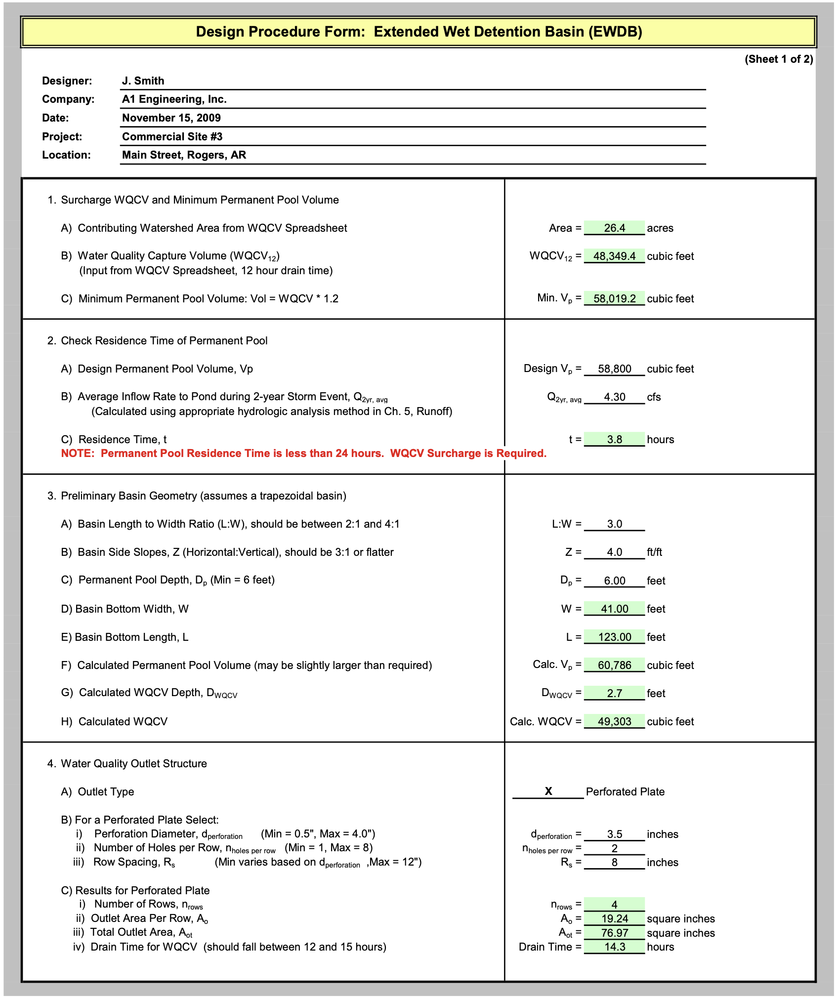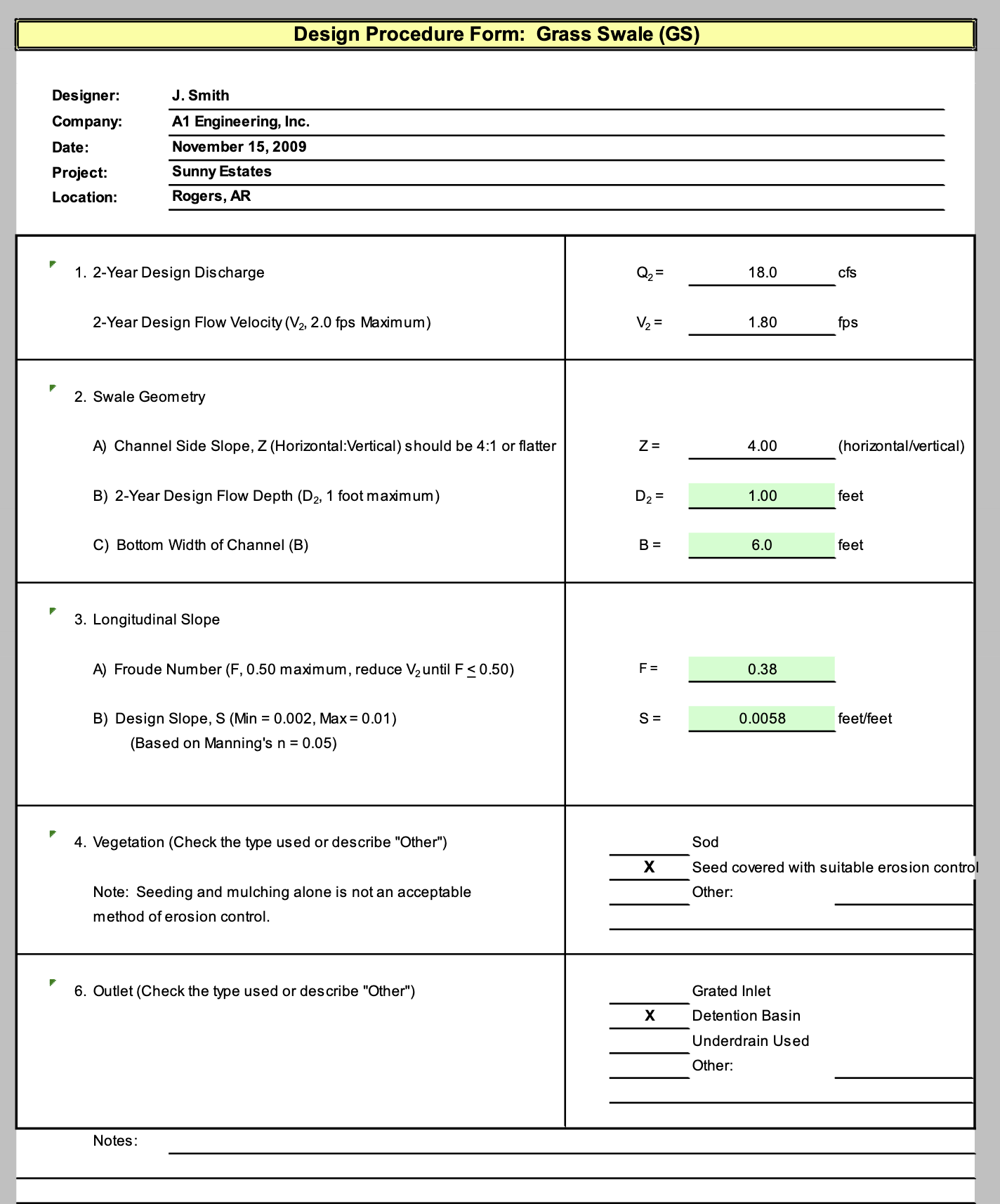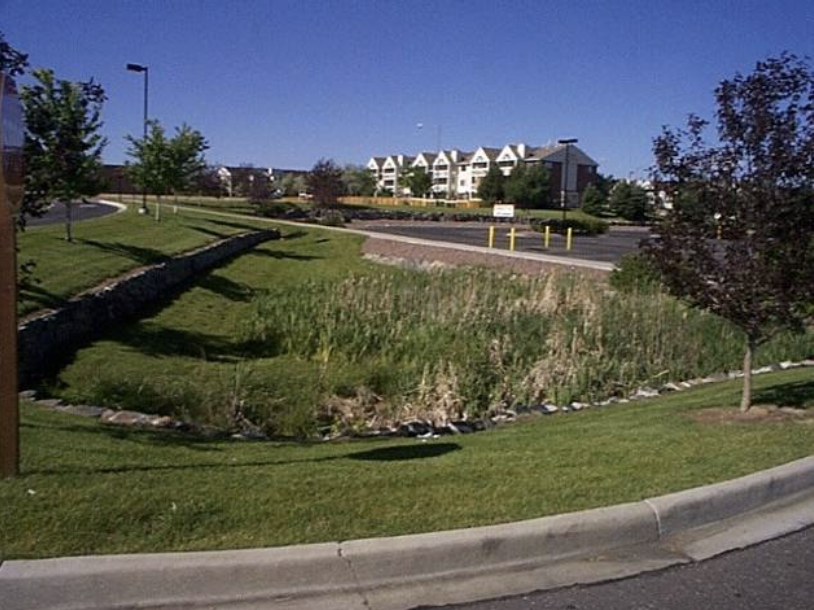 A detention basin is located at the downstream end of the grass swale to provide additional water quality treatment and flood control.