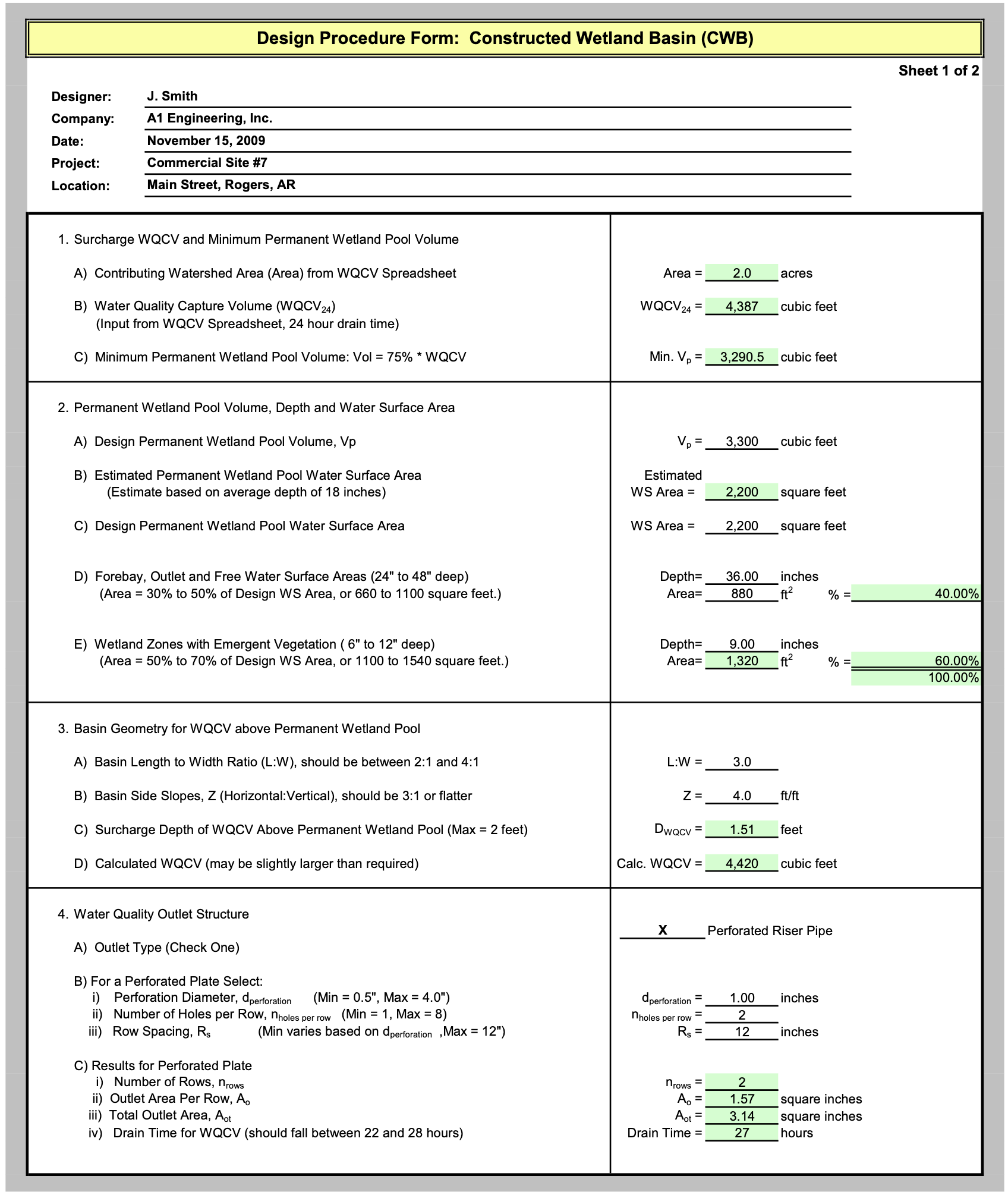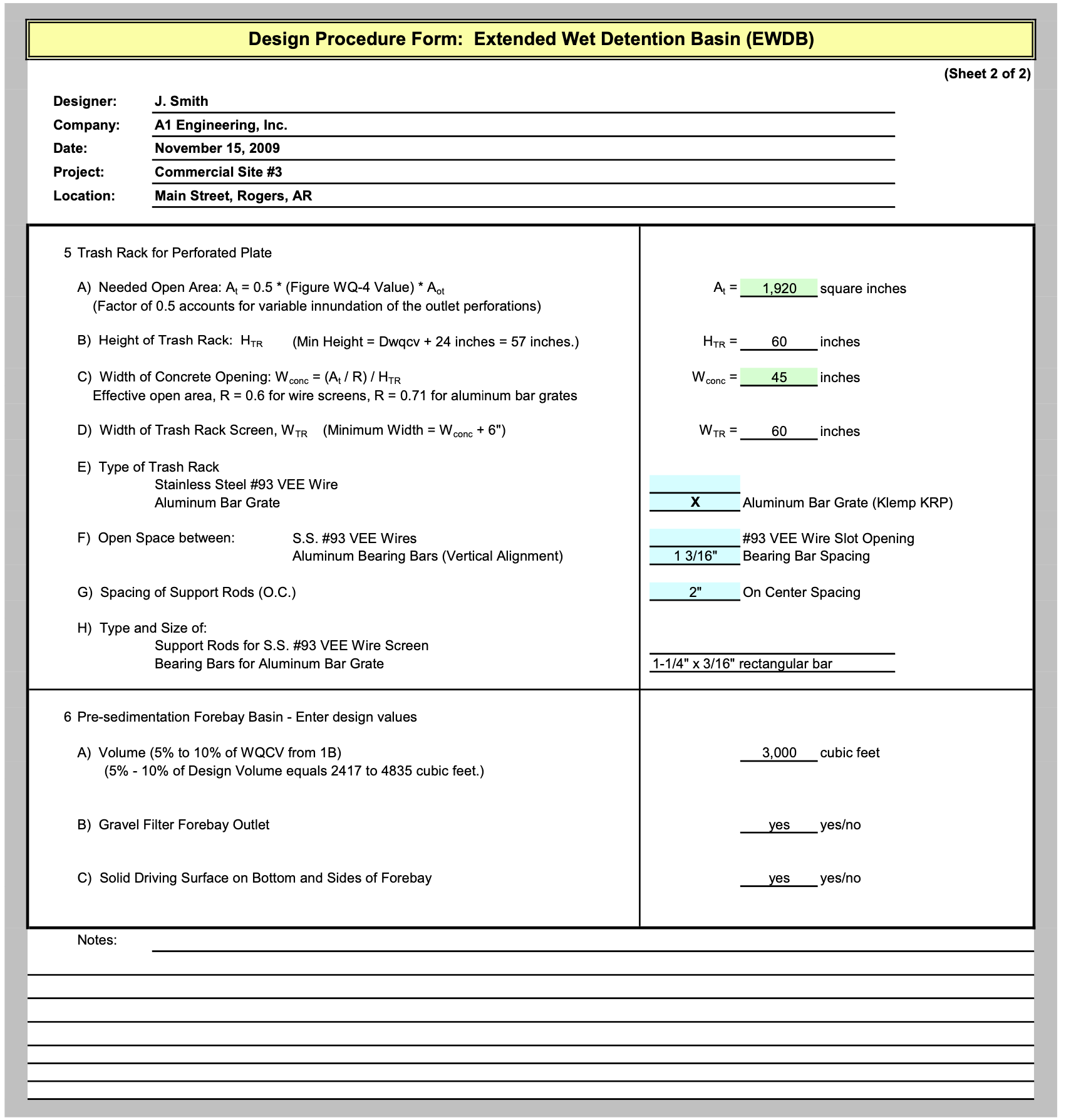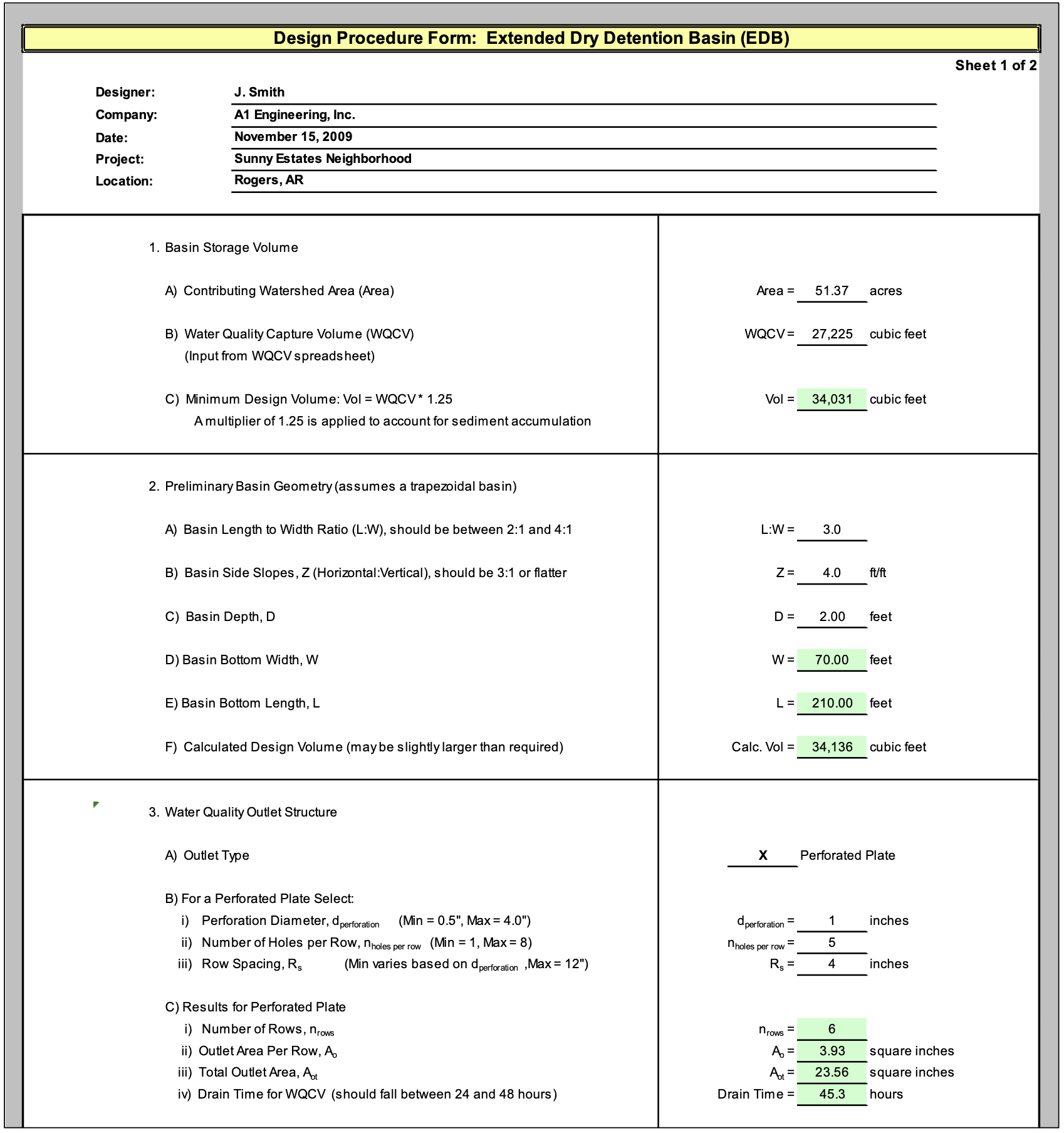 A detention basin is located at the downstream end of the grass swale to provide additional water quality treatment and flood control.