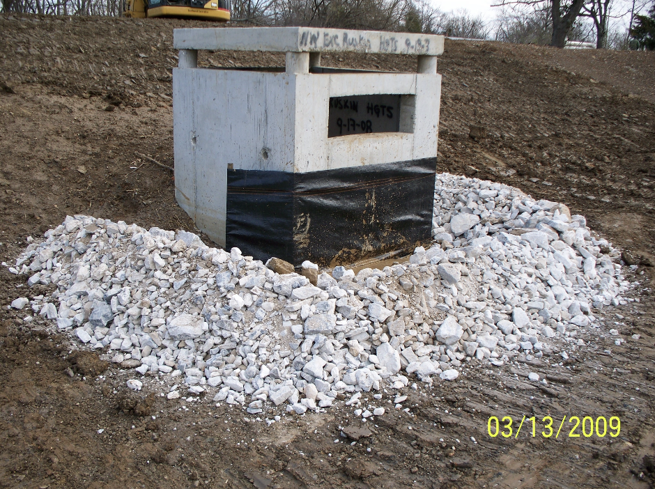 When extended dry detention facilities are used as BMPs in the Direct Recharge Area (Zones 1, 2 and 3), additional filtration of runoff is required. The Captina and Peridge Series soils in the area have good treatment capability because they contain enough fine material that they allow runoff to percolate at a moderate rate, typically in the range of 0.8 to 1.2 inches per hour. To provide additional filtration, a “filter media” layer must be installed beneath extended dry detention ponds in Zones 1, 2 and 3.