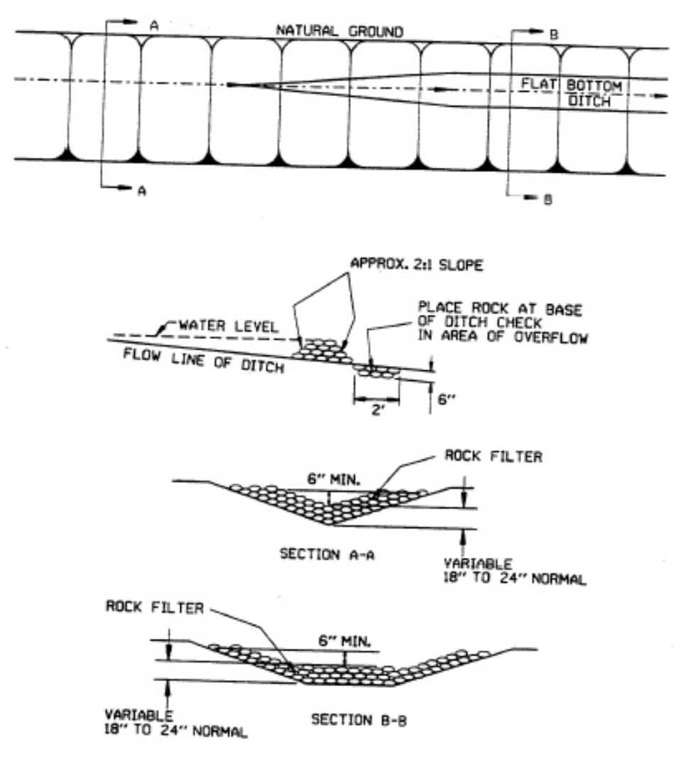 Figure WQ-13 Profile and Sections of a Grass Swale