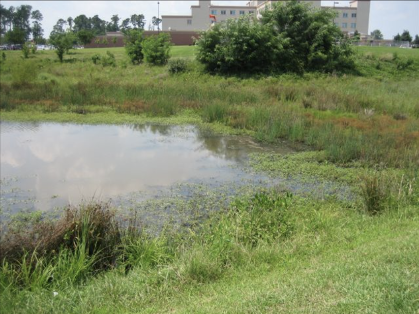 While the BMPs noted above are acceptable for use in the Direct Recharge Area and are capable of achieving desired results using the criteria in Chapter 9, it is far more common for development in the area to use extended dry detention ponds and combine water quality treatment and flood storage in a facility with a multi-stage storage/outlet design. Extended dry detention basins provide treatment primarily via sedimentation and can be effective BMPs. However, in areas with high permeability soils or when excavated through the fragipan, these ponds can actually serve as direct recharge areas when head builds up in the pond during runoff events.