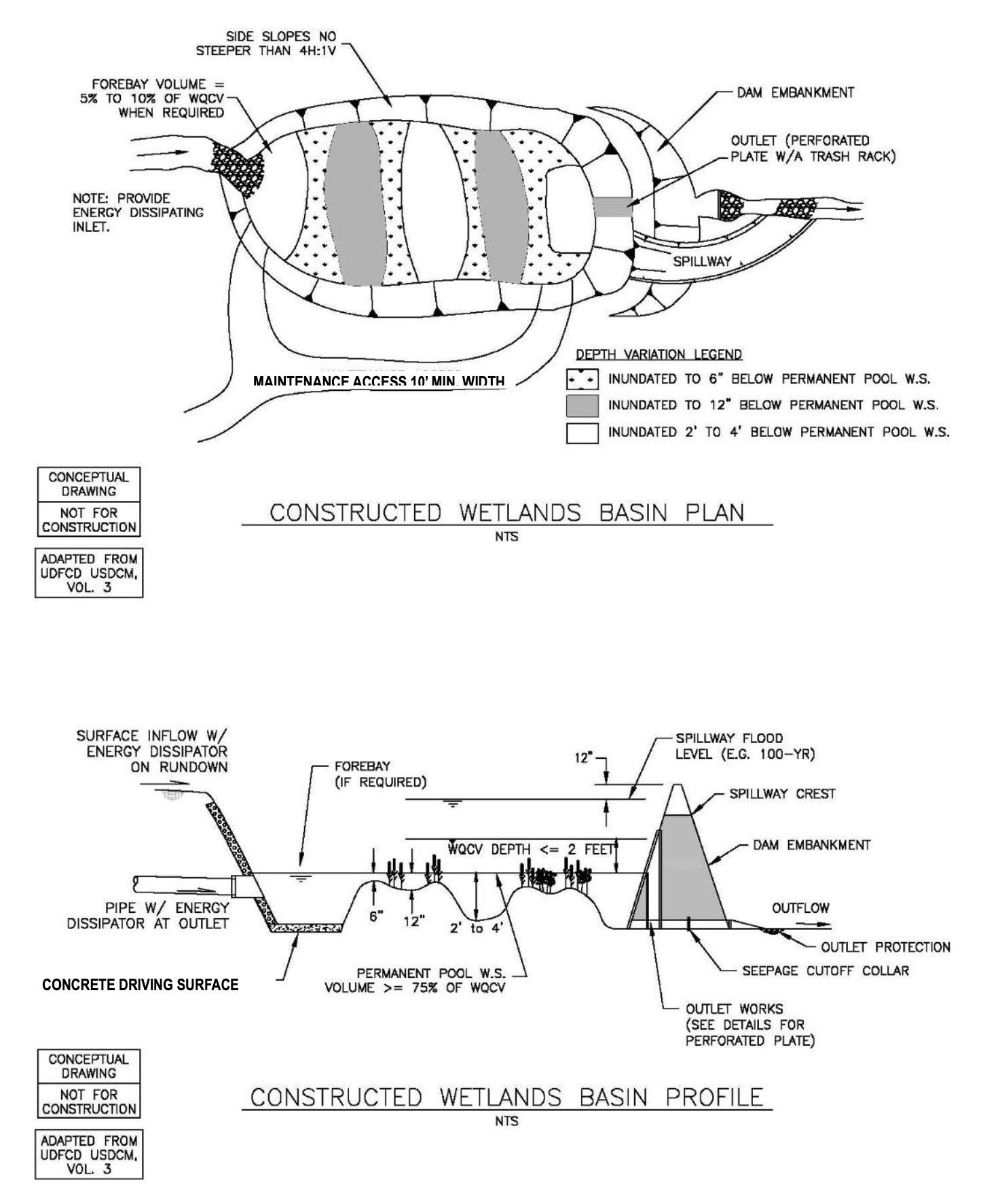 BMPs including extended dry detention, constructed wetland basins, bioretention and sand filters provide a high degree of treatment by virtue of multiple unit processes including sedimentation, filtration, adsorption/absorption, and/or biological processes. These BMPs are acceptable for use in Zones 1, 2, and 3 following the criteria in Chapter 9. Wet ponds or wetlands should be designed to prevent or minimize seepage and maintain a permanent pool. In some cases this may require lining of the pond/wetland.