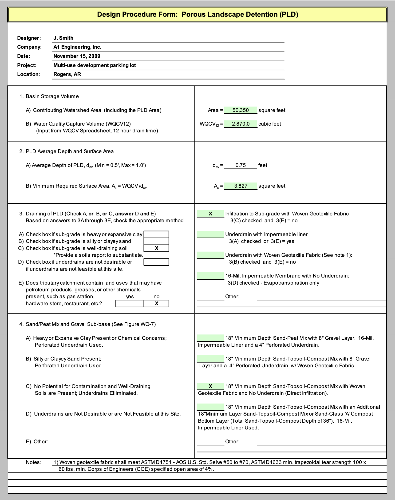 | 4d – Stormwater pond designed in accordance with Karst Provisions of City Drainage Manual with additional media filtration layer | -100 | X | -75 | X | -50 | |