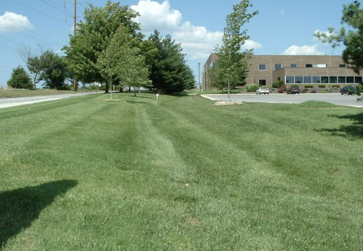 Dense turfgrass must be maintained within a grass swale to retain optimal performance as a water quality BMP. The grass swale must be mowed in accordance with City ordinance unless a maintenance plan for other maintenance methods has been approved by the City Department of Planning and Transportation. If check dams are installed in the grass swale, sediment may accumulate up-gradient of the dams. Accumulated sediment shall be removed when sediment depth exceeds 6 inches, or as necessary to prevent the deposition of sediment downstream.