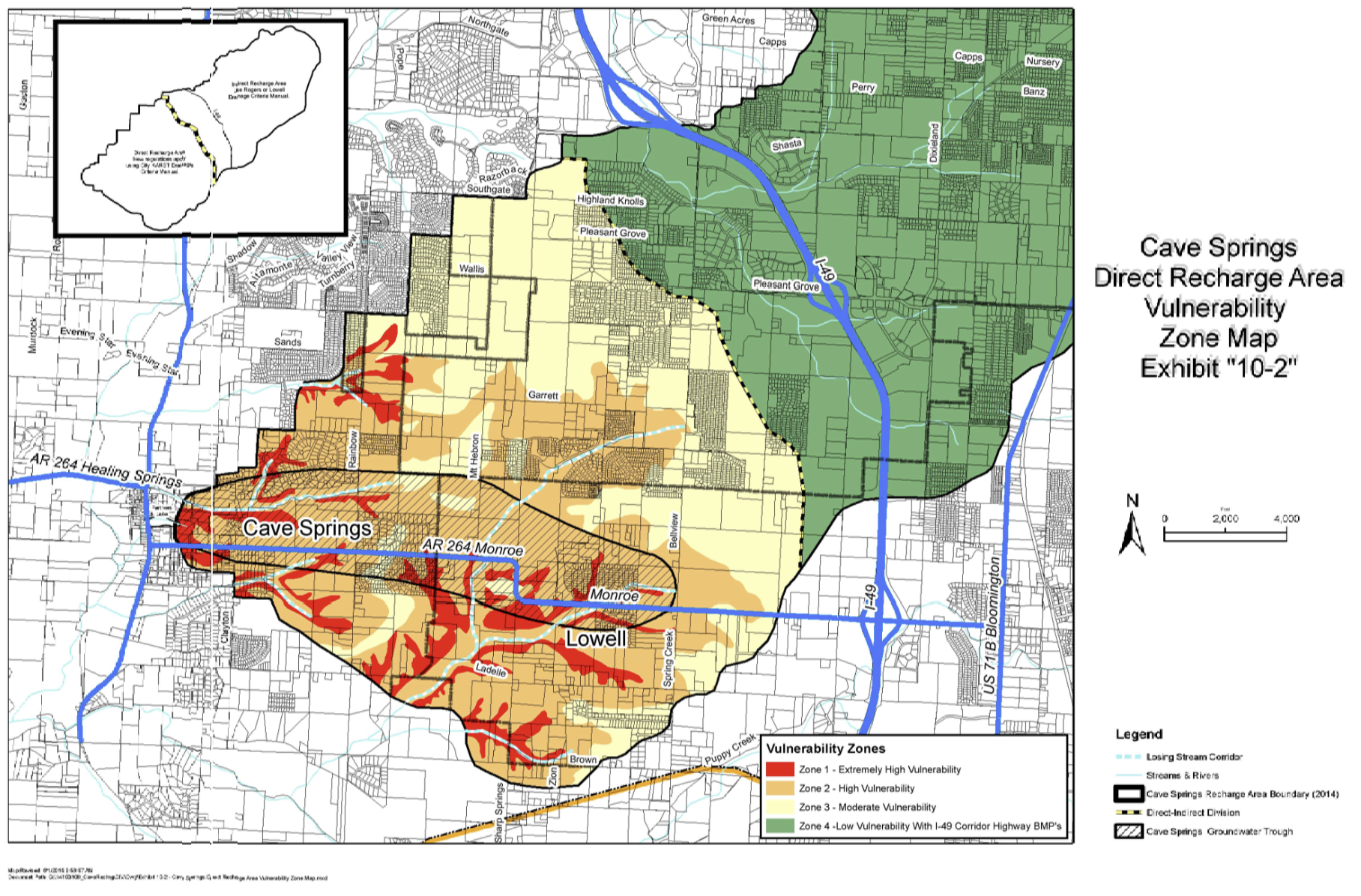 Zones are depicted on mapping shown on Exhibit 10-2. If site-specific conditions indicate that topography, soils, geology or other factors should result in an alternate zone classification, it will be the responsibility of the applicant to technically evaluate and provide supporting information to justify a variance for their project area. Such justification would need to be provided by an Arkansas-registered Professional Engineer and/or an Arkansas-registered Professional Geologist experienced in karst hydrology in a format described in City Ordinance No.