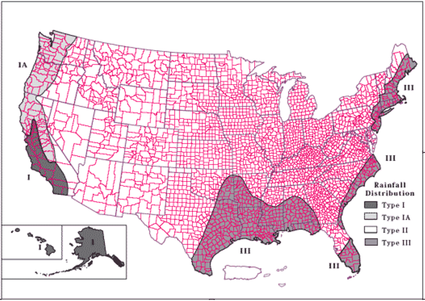 United States Department of Agriculture Natural Resource Conservation Service (USDA NRCS). 1961. Rainfall Frequency Atlas of the United States for Duration from 30 Minutes to 24 Hours and Return Periods from 1 to 100 Years. Technical Paper No. 40, Washington, D.C.: USDA.