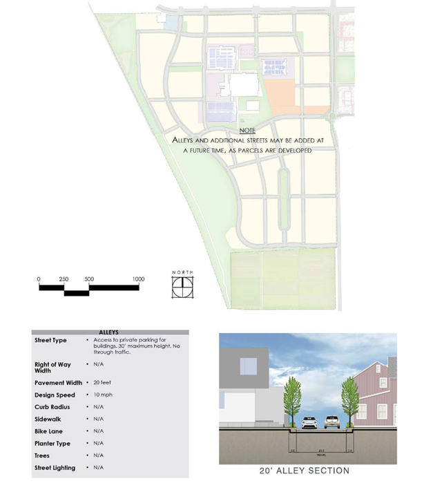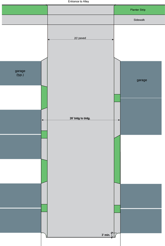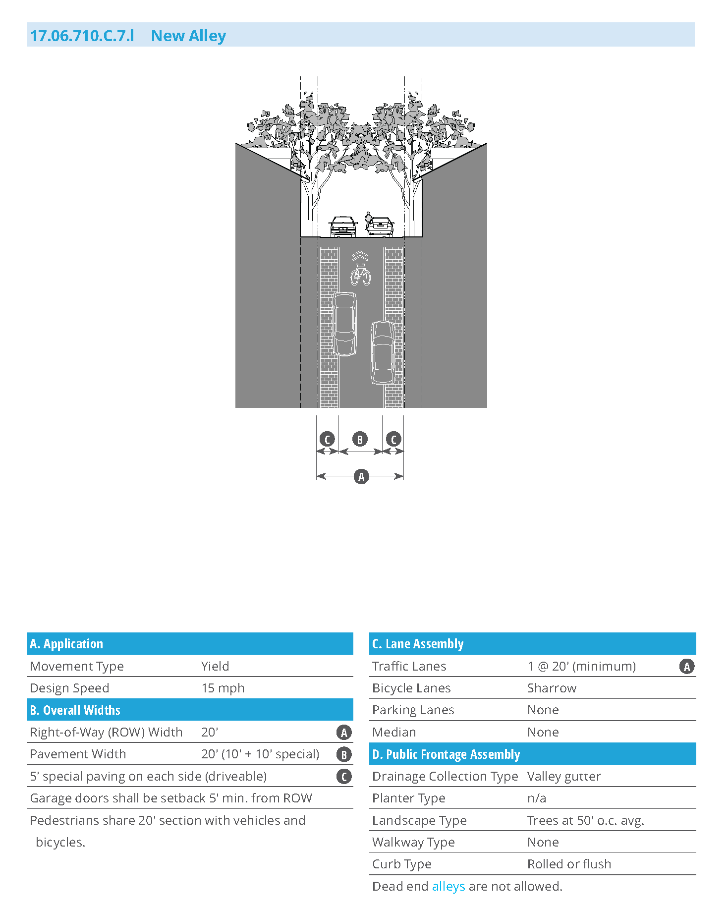 "Rear Lane or Alley." A vehicular way located to the rear of Lots providing access to service areas, parking, and outbuildings.