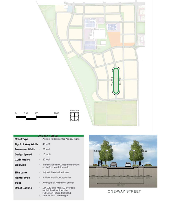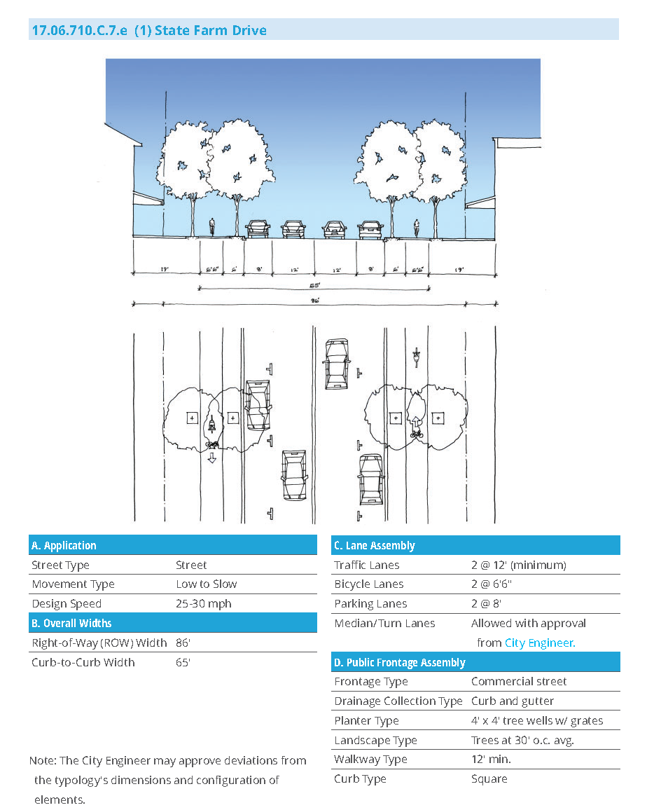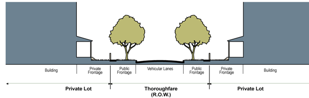 "Thoroughfare." An assembly of sidewalks, planters, parking lanes, bicycle lanes, and driving lanes. See Section 5.