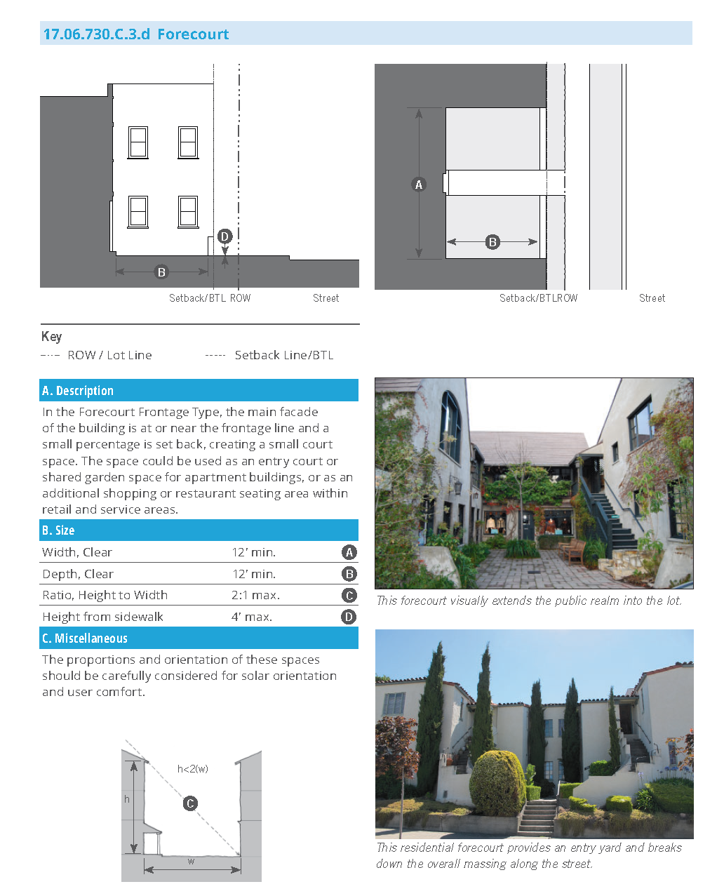 "Setback, Front." The required area extending across the full width of a site measured from the front property line, street plan line, or access easement to the primary structure. The depth of the front setback is measured as the minimum horizontal distance between the front property line, street plan line, or access easement and a line parallel thereto with the required minimum distance determined by the development standards for the applicable zoning district.