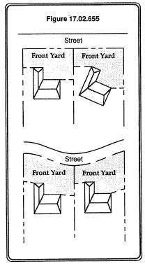 On developed residential lots, the area extending across the full width of the lot measured from the front property line or edge of a private or public easement used for access purposes which incorporates the entire area between the front property line and the front face of the building and extending to the side property lines parallel or equidistant with the front property line;
