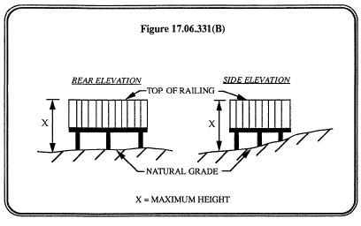 Above-Ground Detached/Hillside Decks. A deck, any portion of which exceeds twelve inches in height from natural/local grade, shall count as lot coverage in accordance with Section 17.06.070 and be subject to the following standards: