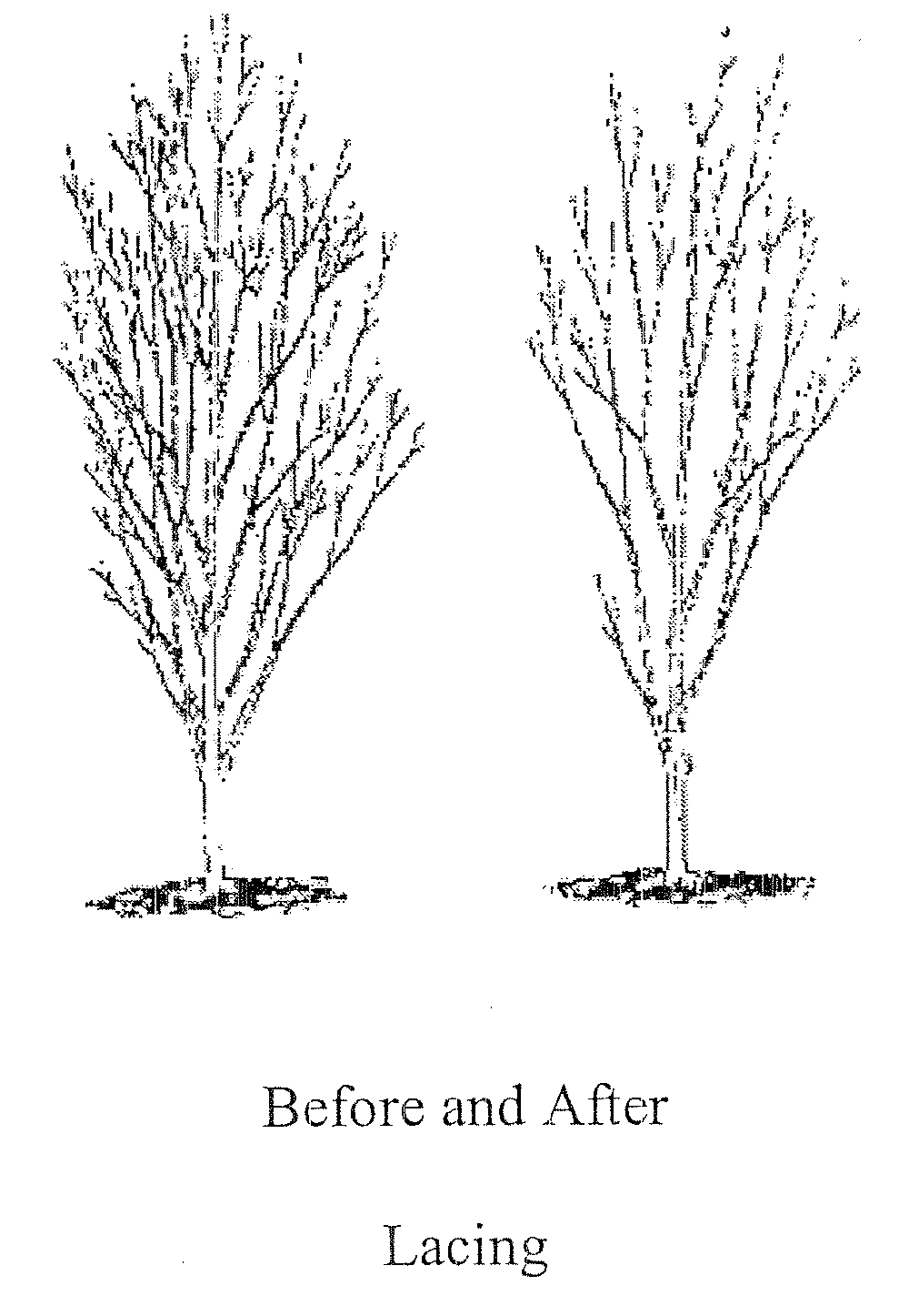 "Lacing" means a comprehensive method of pruning that systematically and sensitively removes excess foliage and improves the structure of the tree. The diagram that follows is illustrative of "lacing" within the meaning of this chapter.