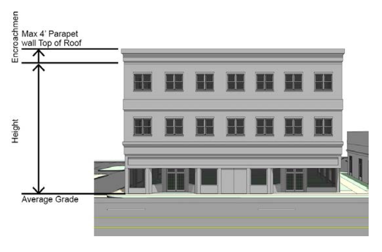 Height encroachments. All buildings must be constructed within the maximum building height, with the exception of height encroachments allowed within each subarea. Allowed encroachments are specified in section E., regulations pertaining to subareas.