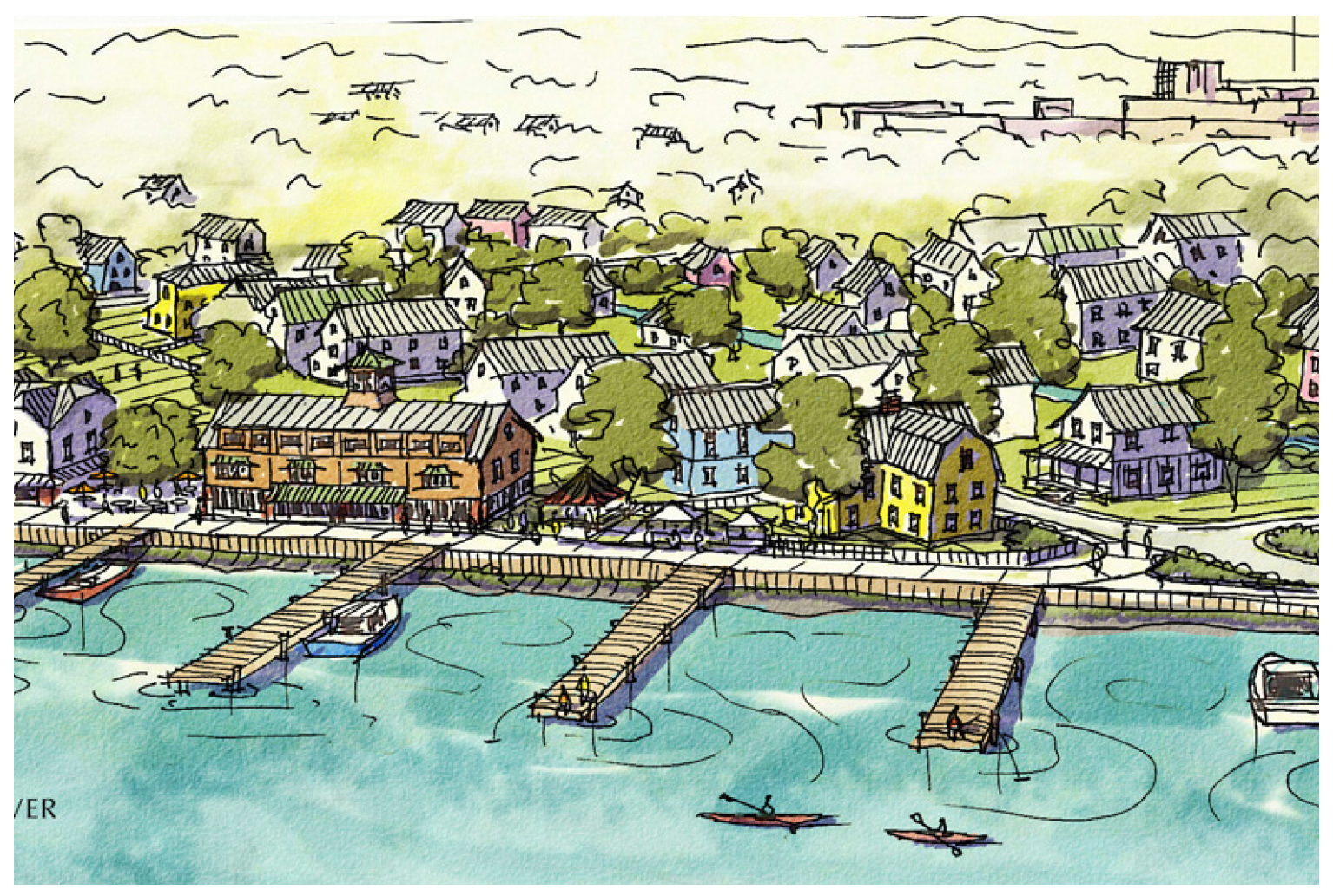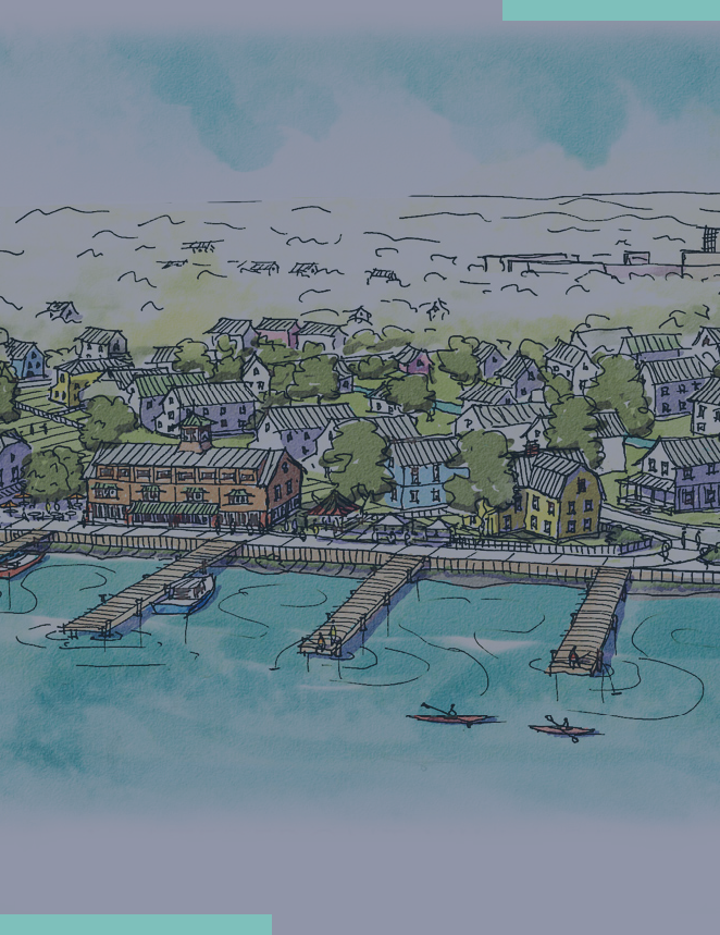Special focus is placed on creating a vibrant, walkable area that prioritizes public access to the waterfront.