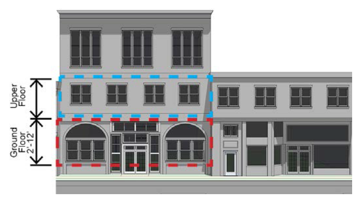 • Active ground floors and utilized upper levels in multi-story buildings.