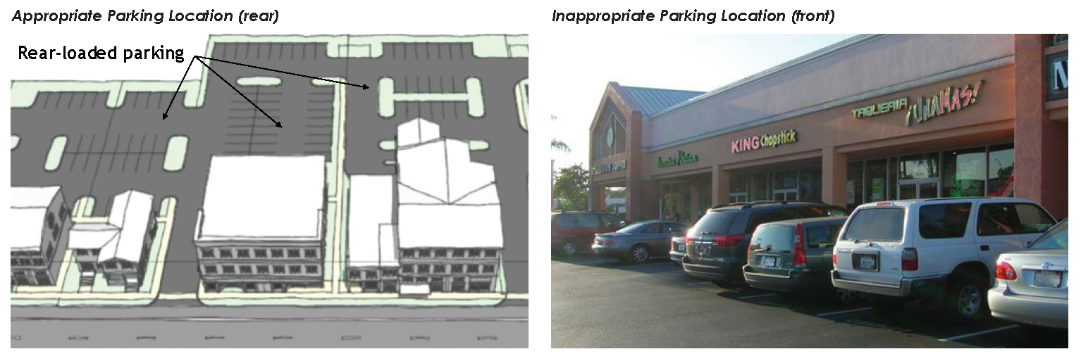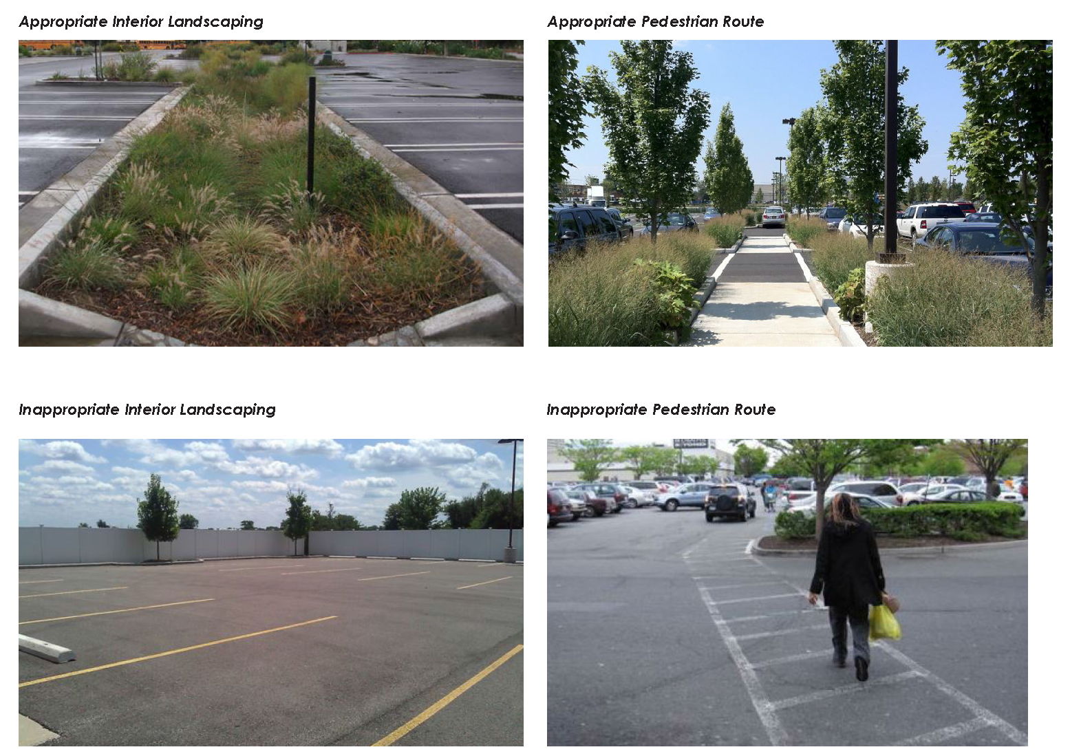 • Ingress, egress, internal circulation, off-street parking, loading/service areas are designed to promote safety, convenience, and provide a high quality pedestrian environment.