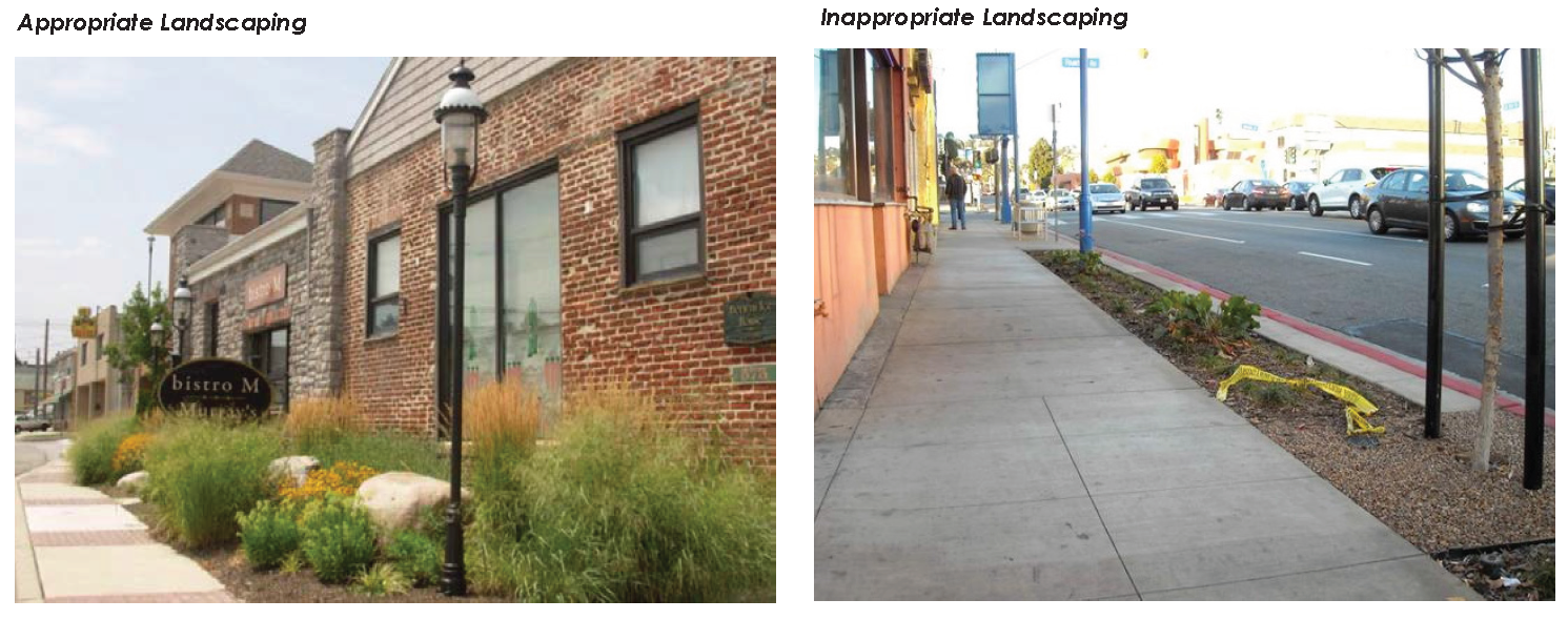 • Pedestrian-oriented street features, such as sidewalks, crosswalks, and mid-block connections, and bike paths.