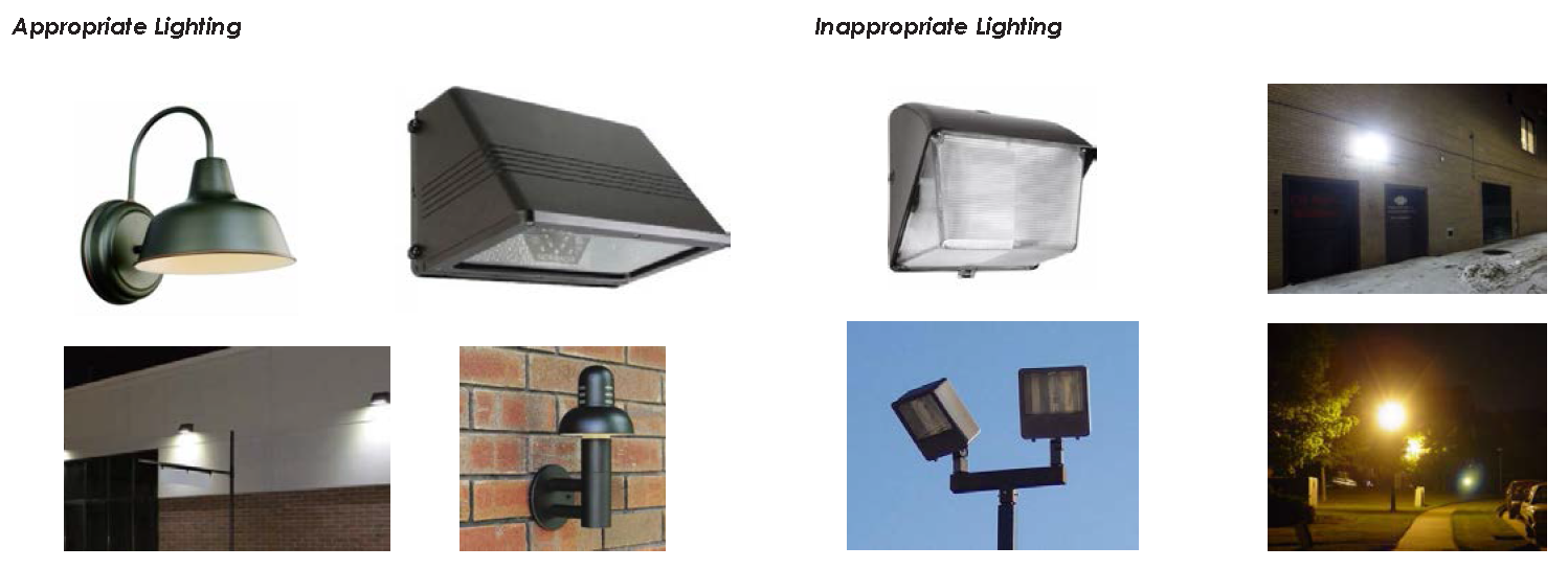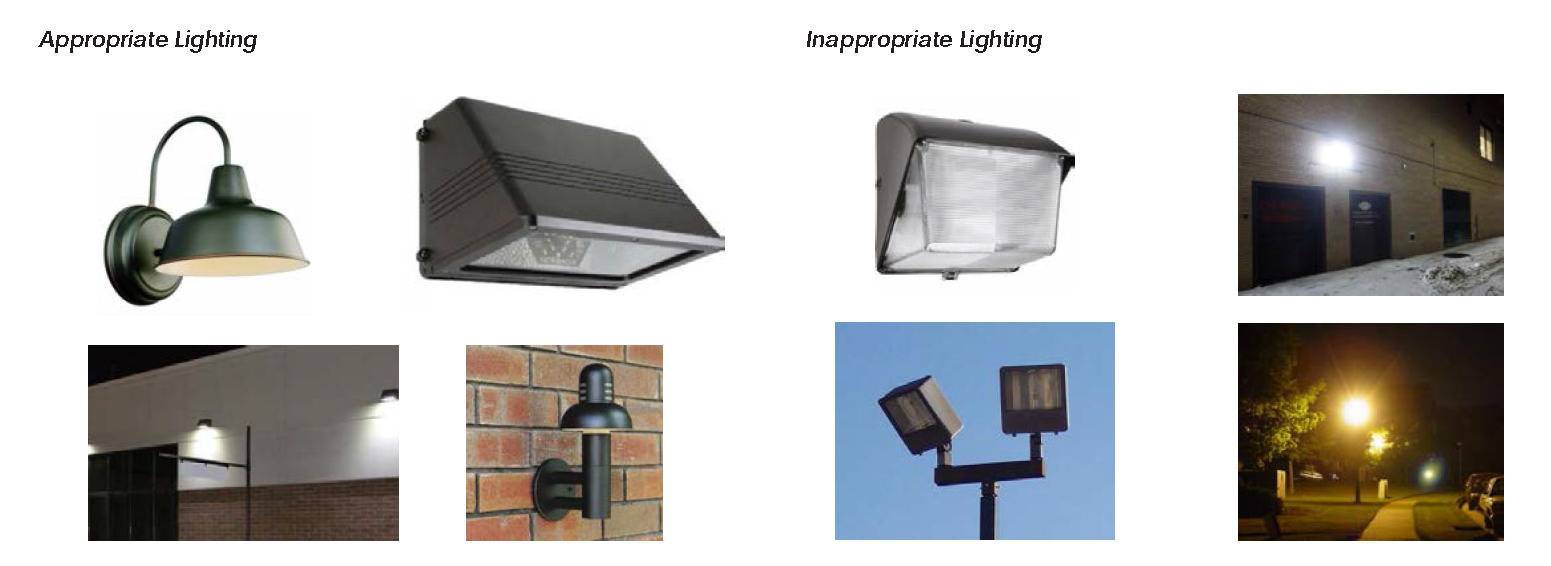 • Site lighting fixtures must be full cutoff. Light trespass into adjacent non-commercial areas shall not exceed 0.1 foot-candles in intensity.