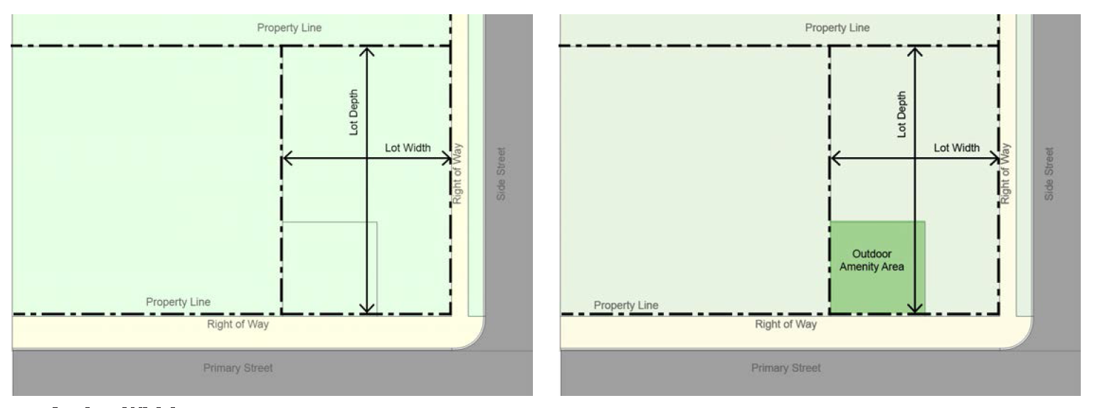 To determine compliance with the build-to zone requirements, the total width of the building portion located within the build-to zone is divided by the width of the lot.