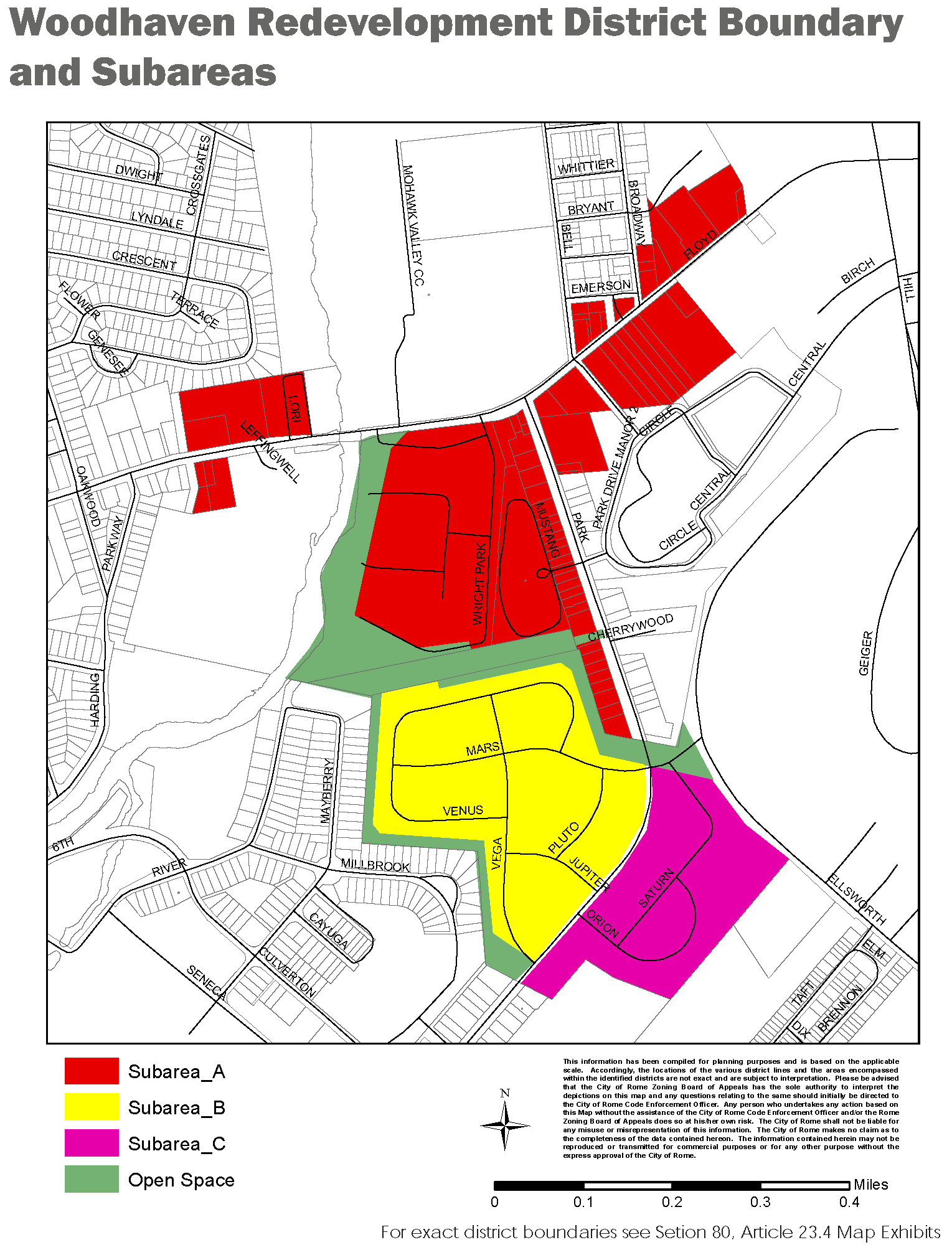 Purpose and intent. The purpose of the Woodhaven Redevelopment District is to create a dynamic, sustainable and attractive mixed-use neighborhood with a focus on recreation. The Woodhaven Redevelopment District will harmonize single-family, two-family, multiple-unit, and mixed-use structures to attract a broad spectrum of families, professionals, retirees, and students. In the context of a multiple-use, intermodal Greenbelt concept, this district will connect to existing municipal streets, sidewalk, and trails in the surrounding neighborhoods and prioritize the preservation and enhancement of natural resources, urban trees, and public greenspaces along the Mohawk River area to maximize the environmental, financial, and social benefits. The redevelopment of this area will also serve to prioritize and enhance the physical connection to the Rome Free Academy High School, and the Griffiss Business and Technology Park.