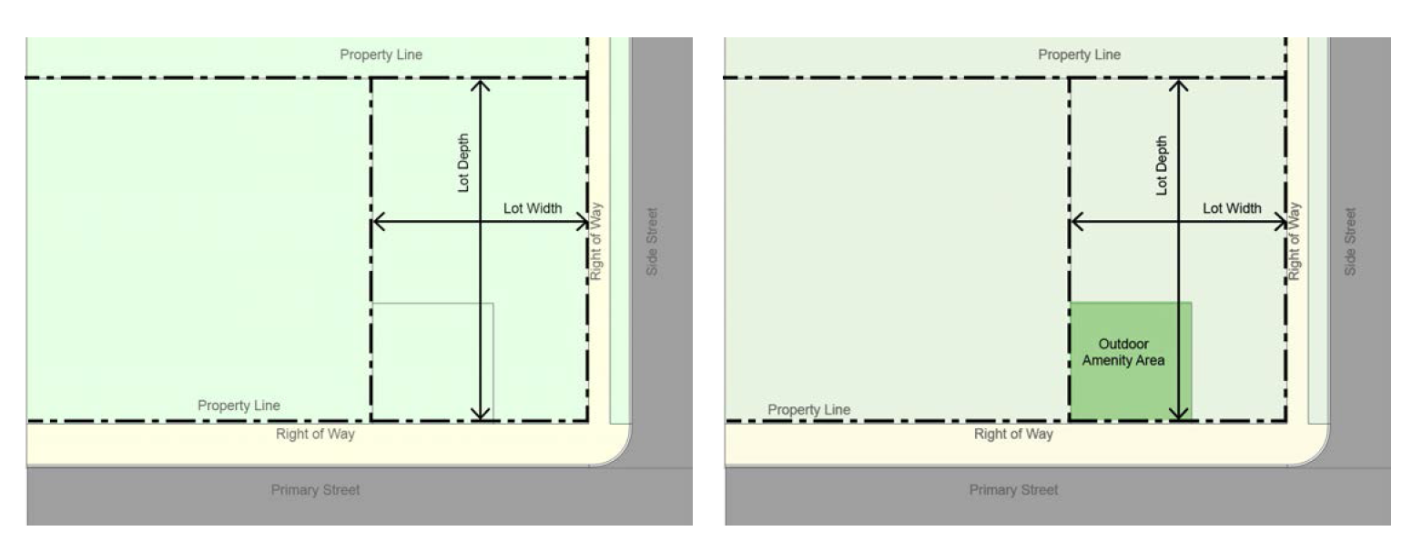 Outdoor amenity space. Where required, as noted within each subarea, outdoor amenity areas must be provided on the site and must be available as unenclosed, improved active or passive space for use by the occupants of the development. It may be provided in one contiguous open area or multiple areas on the site.