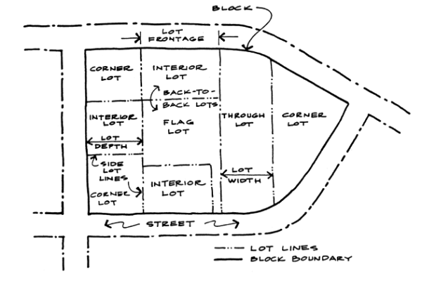 Lot depth means the mean horizontal distance measured from the front street right-of-way line or private street centerline to the rear lot line.