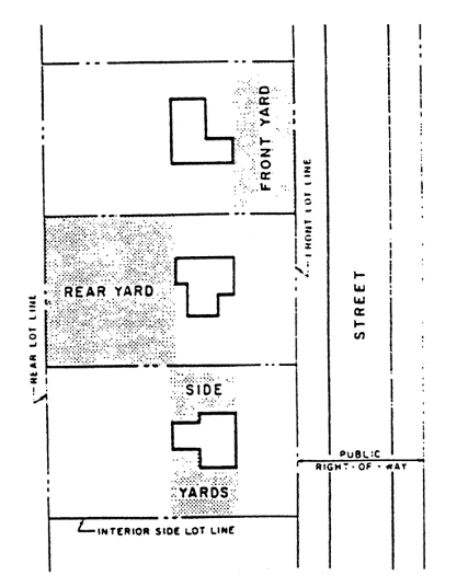 Yard means an open space, unoccupied and unobstructed from the ground upward, except as otherwise provided in this chapter, and being on the same lot with a building. The measurement of a yard shall be construed as the minimum horizontal distance between the lot line and the building or structure. A required yard is that portion of any lot on which the erection of a main building is prohibited.