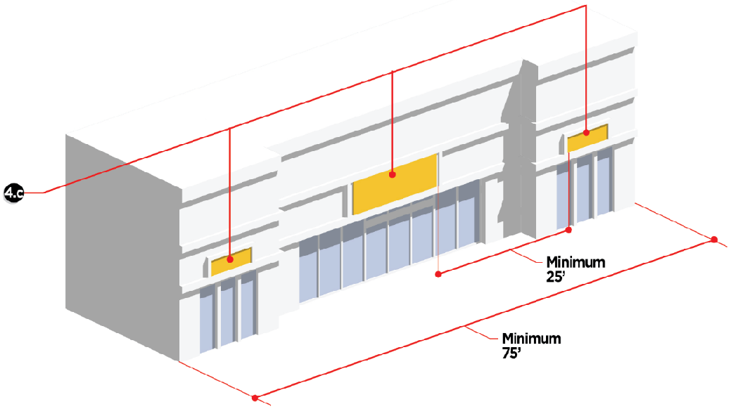 A maximum of three secondary wall signs may be authorized for buildings with lineal frontage in excess of 75 feet by the zoning administrator provided such additional signage is: