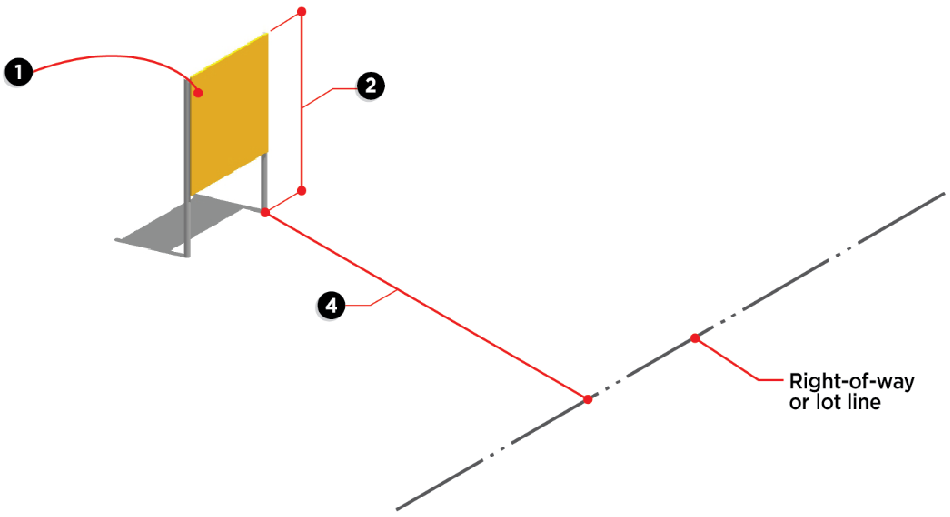 Location. Post signs shall be located a minimum of five feet from all property lines, rights-of-way, and utility easements; shall not block points of ingress or egress; be placed in any sidewalk or pedestrian walkway and shall not be located in a clear vision triangle as detailed in section 15-520.