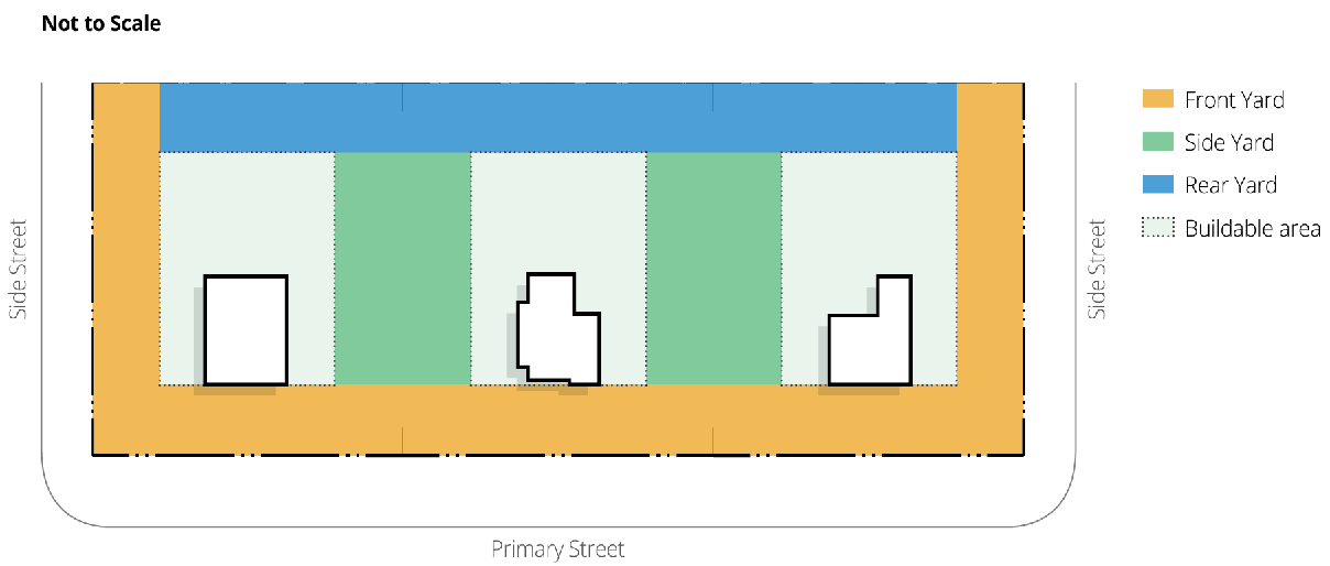 (1) The required front yard setback of lots fronting Main Street between Grove Street and Elevator Street or fronting Elevator Street between Highway 251 and Pearl Street shall be a minimum of zero feet and a maximum of ten feet.