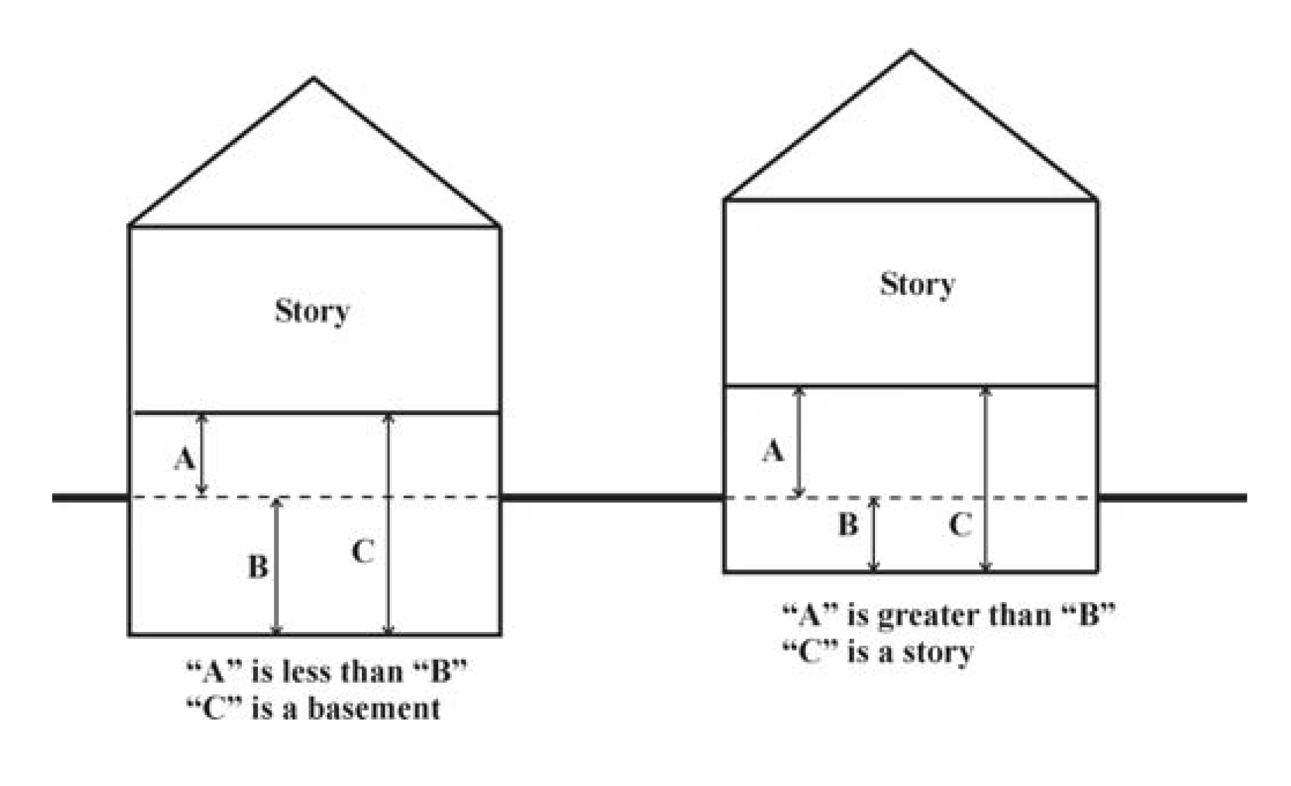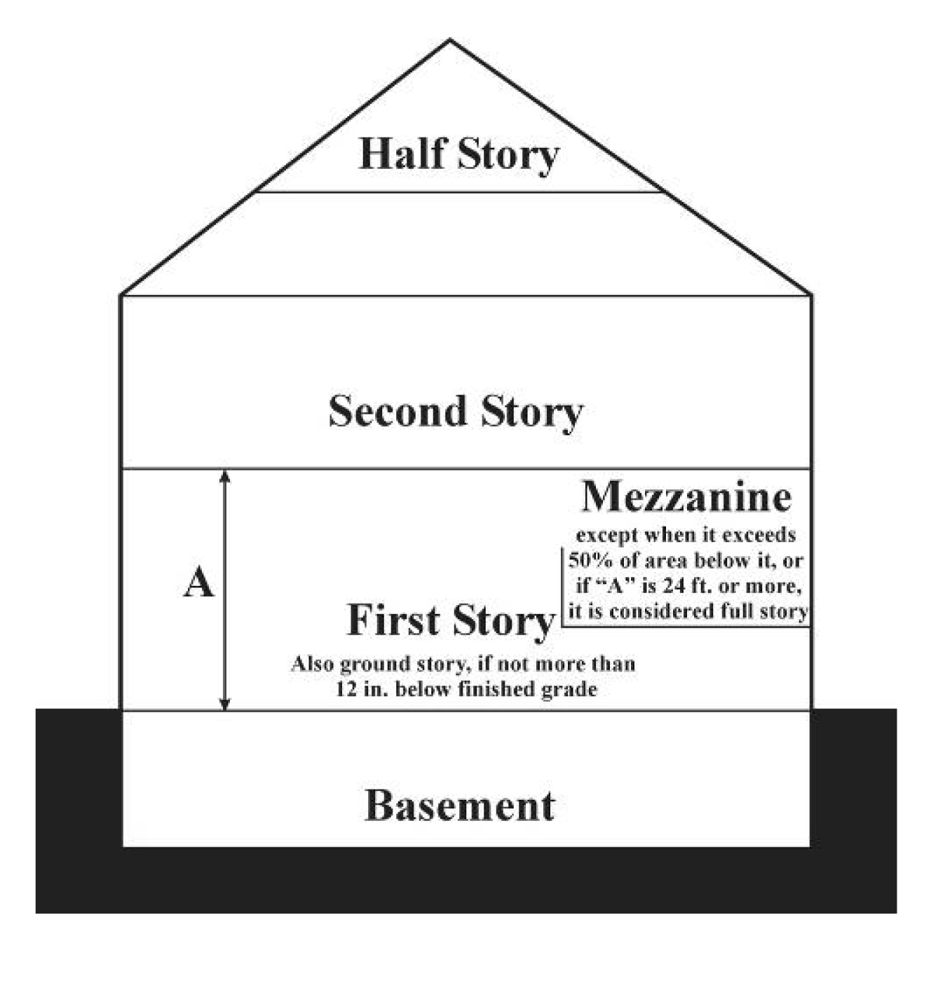 Story means that part of a building included between the surface of one floor and the surface of the next floor, or if there is no floor above, then the ceiling next above.