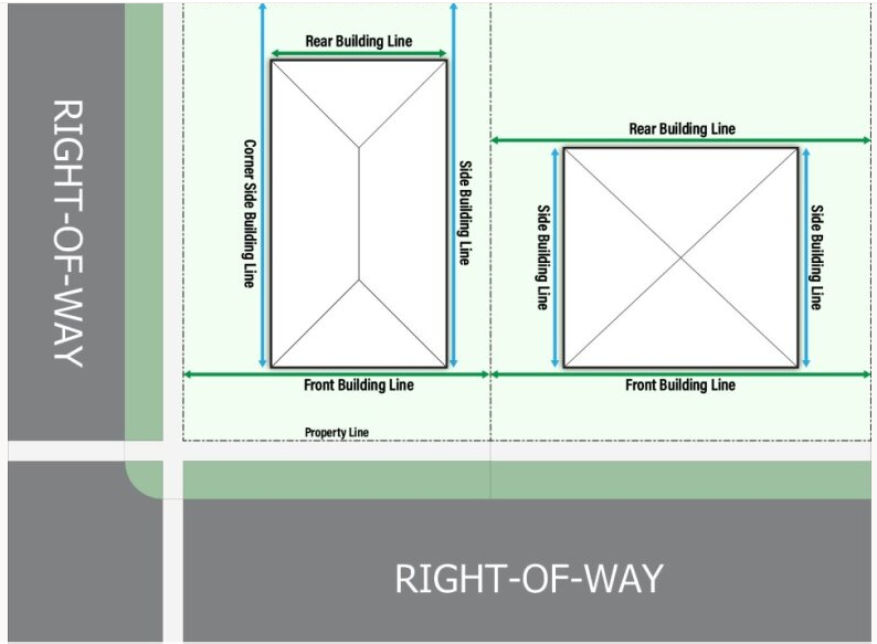 Establishing and regulating building or setback lines on or along streets, alleys, trafficways, drives, parkways, storm or flood water runoff channel or basin, or property lines to secure development that enhances its surroundings and the Village.