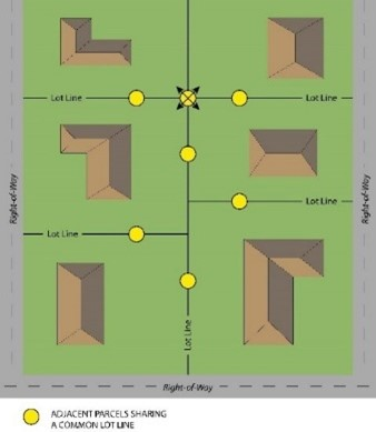 Adjoining (abutting, contiguous) lot or land. A lot or parcel of land that shares all or part of a common lot line with another zoning lot or parcel of land.
