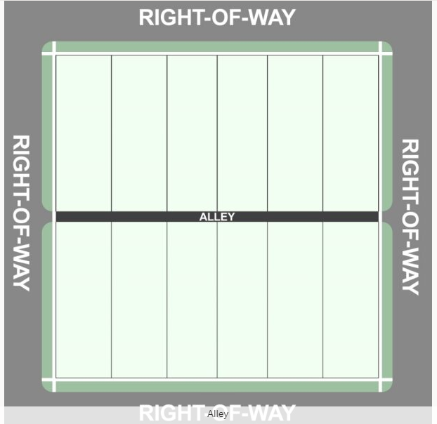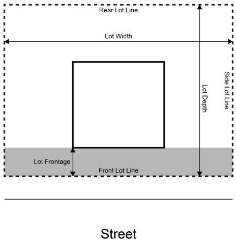 Street frontage. The distance along a right-of-way line from one property line to the next of an individual property.