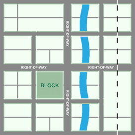 Street. An improved surface that affords a primary means for vehicular access to abutting properties, and which is typically located within a right-of-way. Driveways to buildings are not part of the street. See "right-of-way."