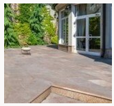 Terrace. A leveled, paved or planted area on top of a flat roof or open platform adjoining a building.