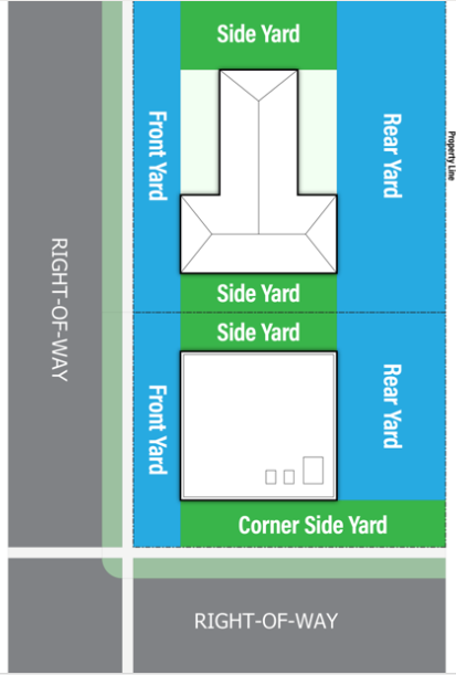 Yard, front. A yard extending along the full length of the front lot line between the side lot lines. On a corner lot, the front yard is also considered to extend along the corner side lot line from the front yard to the rear lot line.